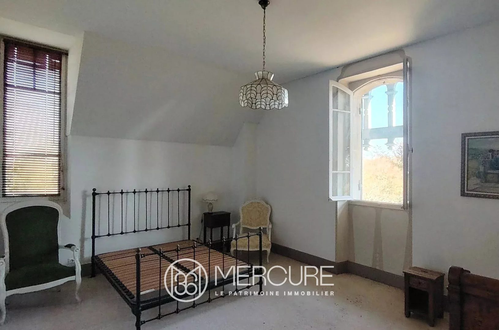 Au premier étage, un vaste palier dessert quatre grandes chambres, dont une suite parentale dotée de portes-fenêtres ouvrant sur la nature et disposant d’un dressing attenant pouvant également accueillir une chambre d’enfant. La suite communique avec une salle d’eau avec double vasque et une véranda baignée de lumière. Sur l’aile gauche de l’étage se trouve une salle de bains équipée d’une baignoire ancienne. Cet étage est entièrement parqueté et chaque chambre a une cheminée.