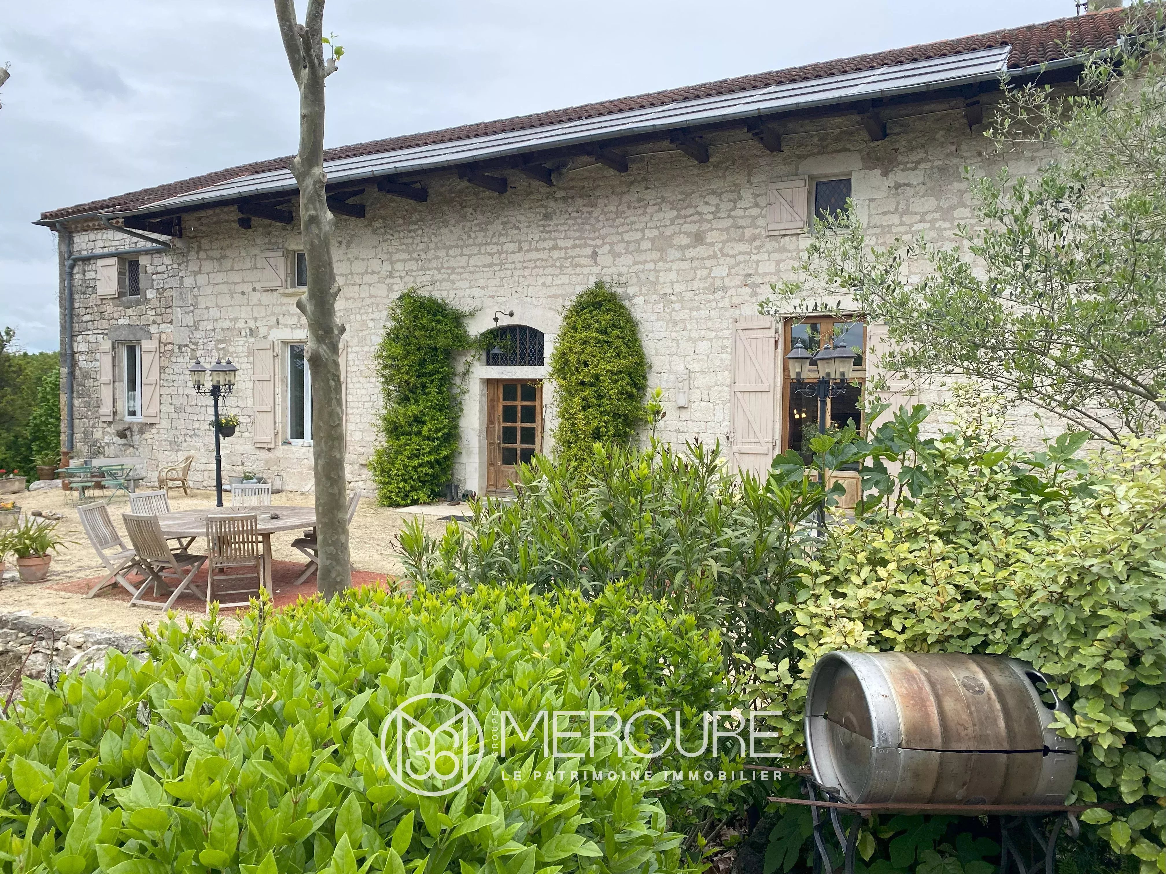Ancienne métairie du XVIIᵉ siècle, la maison de pierre (334 m²) a conservé son âme.