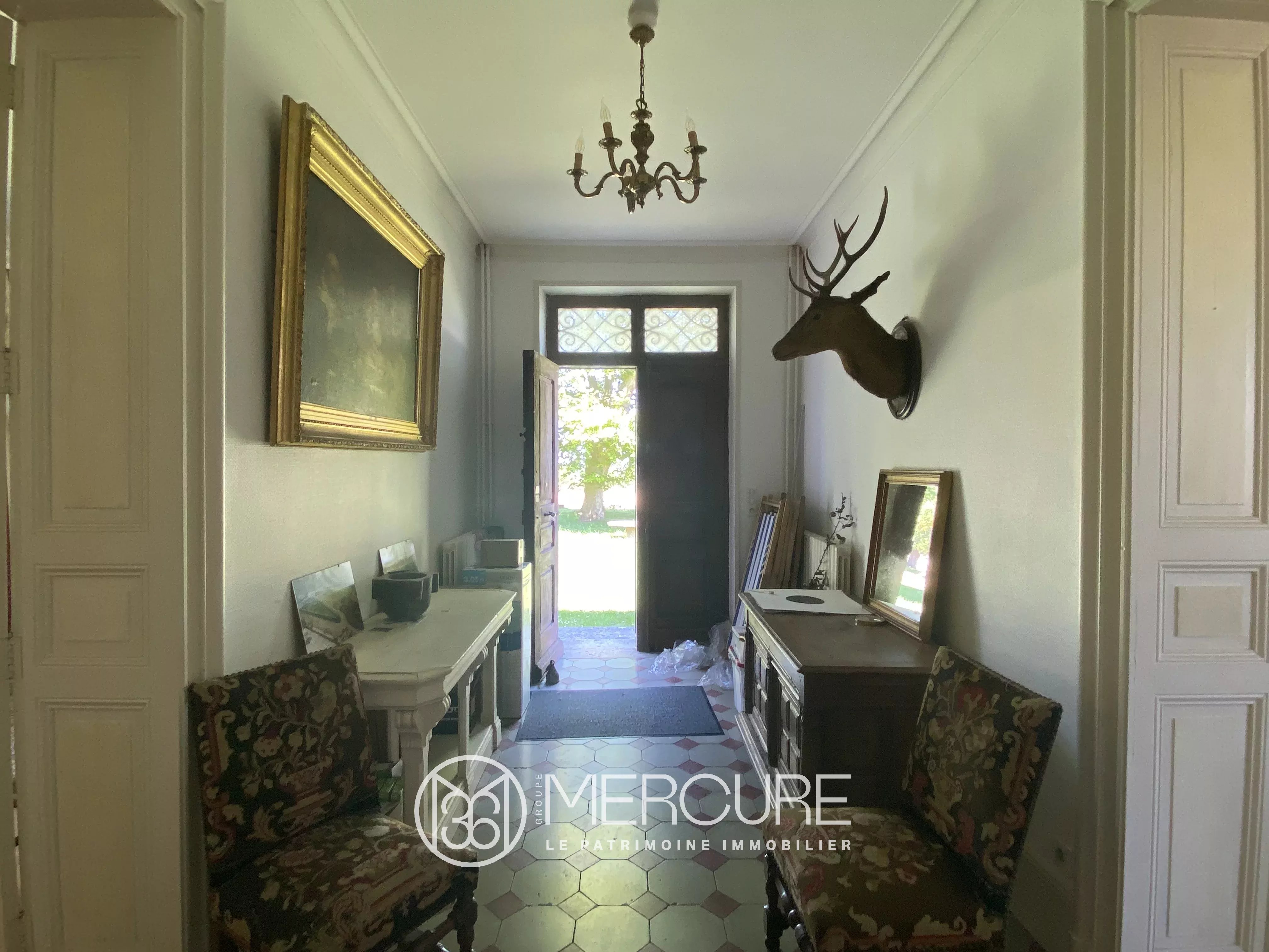 Au beau milieu de ce havre de verdure se dresse une maison de maître en pierre, sans ostentation, dont les 387 m² habitables expriment le raffinement d’une demeure de famille patinée par le temps. Dès l’entrée traversante, aux carreaux anciens et aux plafonds hauts, le ton est donné : moulures, parquets d’époque, cheminées en marbre, grand escalier, autant de détails qui racontent une histoire, celle d’un art de vivre transmis de génération en génération.