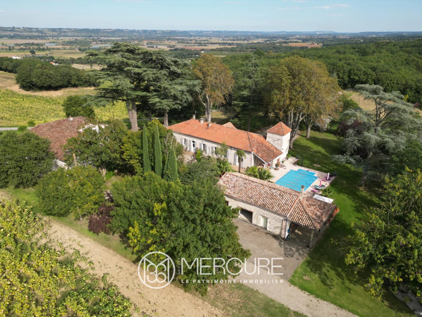Proche d’Agen, propriété rénovée avec vue panoramique dans un environnement calme et sans vis-à-vis sur 1,6 Ha avec jardin arboré et pâtures, comprenant une maison principale du XVIIème, trois gîtes indépendants, des dépendances et une piscine chauffée.