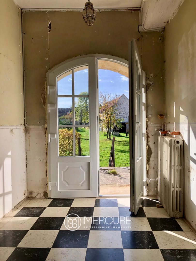 Fenêtres neuves en pvc peintes oscillo-battantes sur le logis et le pavillon d’entrée