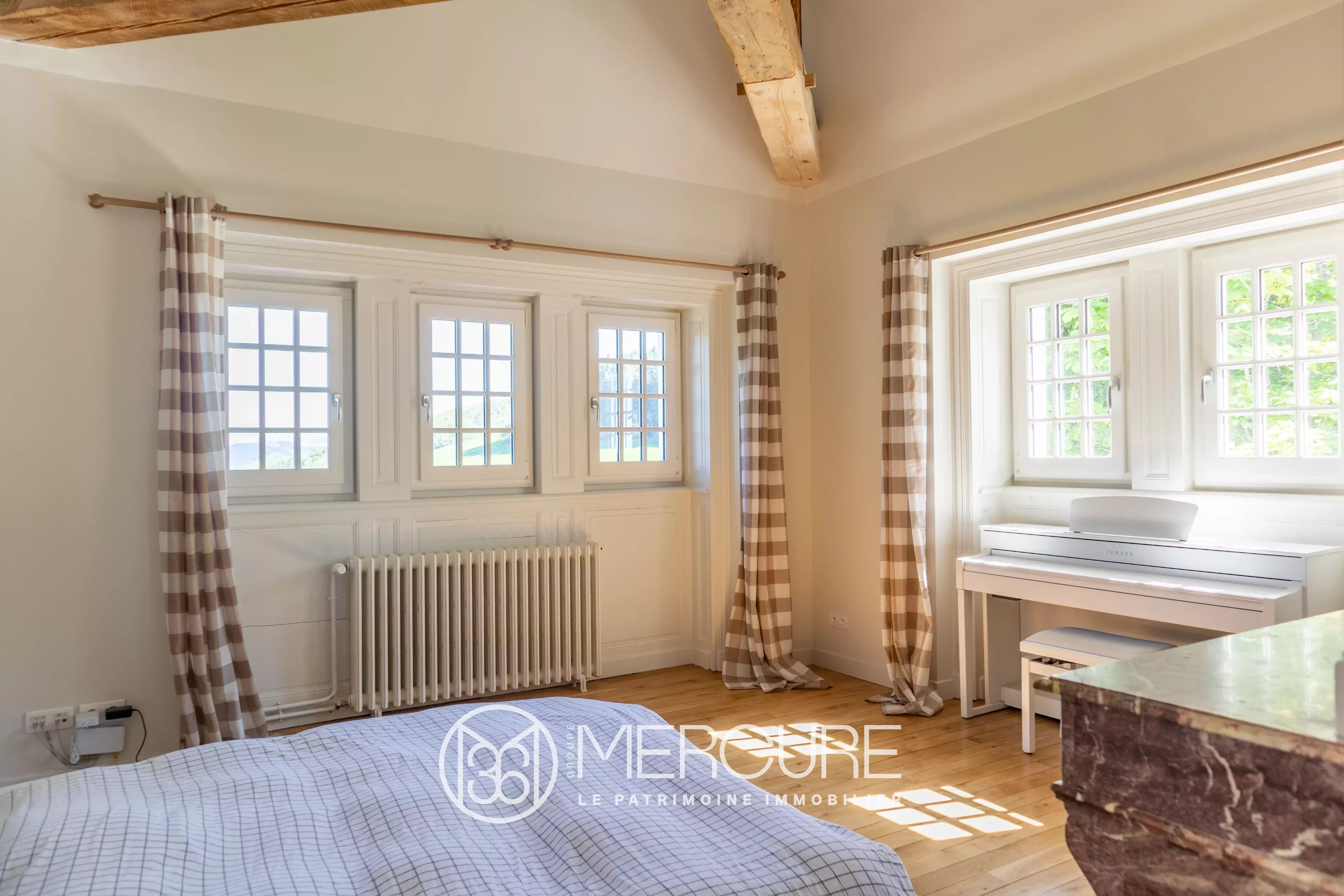 Au 2° étage : 4 chambres dont une dans l’élégante tour sud-est avec une grande hauteur sous charpente ; salle d’eau / toilettes.