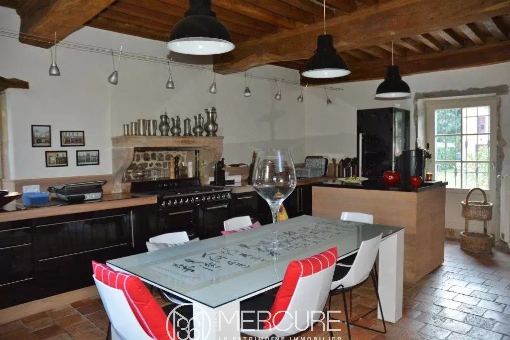 Dans le secteur de Cluny, propriété du XVIIIème siècle comprenant une maison principale d’environ 275 m² habitables en 6 pièces principales dont actuellement 2/3 chambres (possibilité 2 supplémentaires) et leurs salles de bains, une maison d’invités d’environ 100 m² habitables en 4 pièces principales dont 3 chambres, un logement de gardien d’environ 40 m² habitables en 3 pièces principales dont 2 chambres. Plusieurs dépendances : pigeonnier, atelier, grange à usage de garage, bûcher, appentis. Parc d’environ 7600 m² avec piscine chauffée, terrasses et pergola, portail électrique…