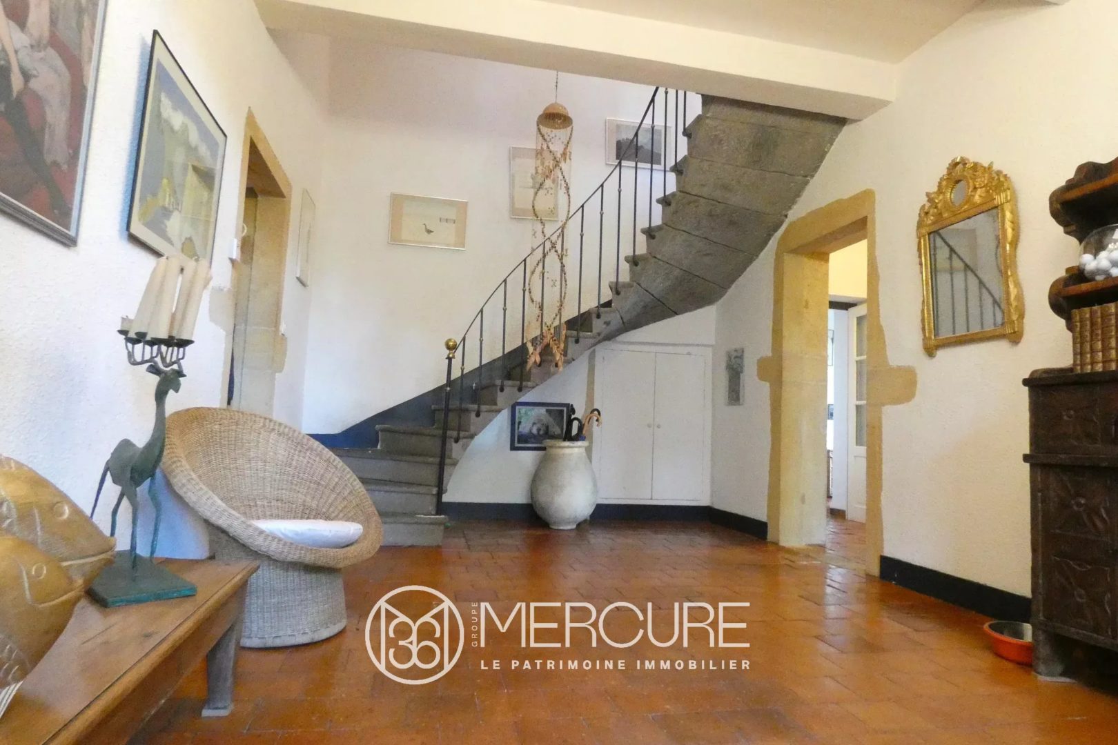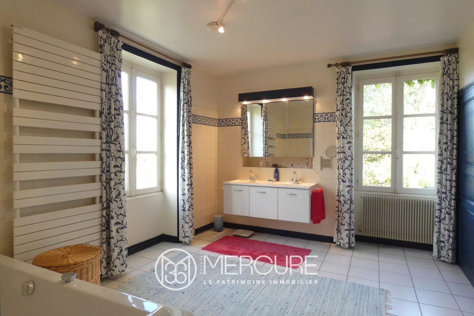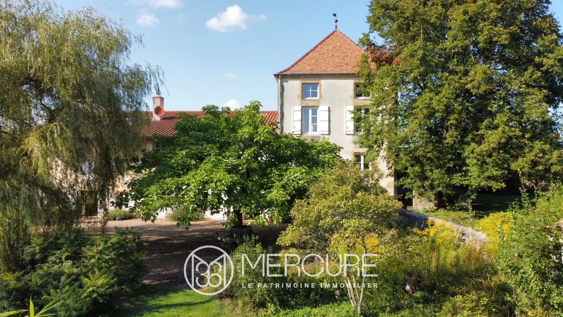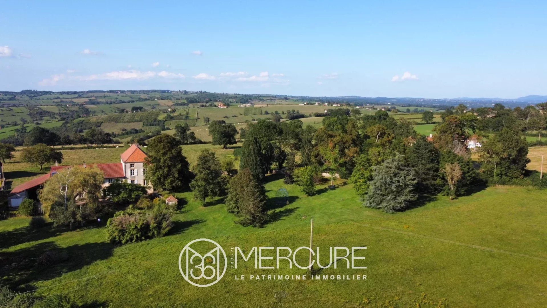 Située en bordure d’un village, cette belle propriété de 1870 bénéficie avec son altitude de 400 mètres d’une vue panoramique sur la campagne et les monts environnants. Calme, nature et espaces tant intérieurs qu’extérieurs caractérisent cette propriété de 344 m2 habitables installée sur un terrain de 1,86 hectare. Elle se compose d’une demeure typique du Brionnais sur 2 niveaux, d’une grange aménagée également sur 2 niveaux, d’un garage et d’un abri de jardin. Potentiel d’aménagement important au 1er étage et dans les greniers proposant 2 pièces avec une jolie charpente. Travaux et aménagements réalisés dans les années 90. Bon état général y compris les toits. Compte-tenu des rénovations effectuées, des prestations et de l’entretien continu, il est possible d’emménager immédiatement dans cette grande maison familiale de 5 chambres dont une avec balcon donnant sur le jardin et 3 chambres de plus de 25 m2 (potentiel d’au moins 7 chambres si besoin). Grande pièce à vivre avec cheminée, cuisine ouverte sur salle à manger avec terrasse, 2 salles de bain et une salle d’eau très spacieuses, belle cave voûtée, le tout distribué sur 2 bâtiments communicants entre eux par escalier en chêne et pierre de Volvic. Chauffage fioul et solaire (radiateurs et sol). Le terrain de près de 2 hectares est clos et arboré pour partie et libre de végétation en limite de propriété. Activité équestre et piscine possibles. Tonte par robot, 2 puits, arrosage automatique, mare, cour avec bel ombrage, portail électrique.