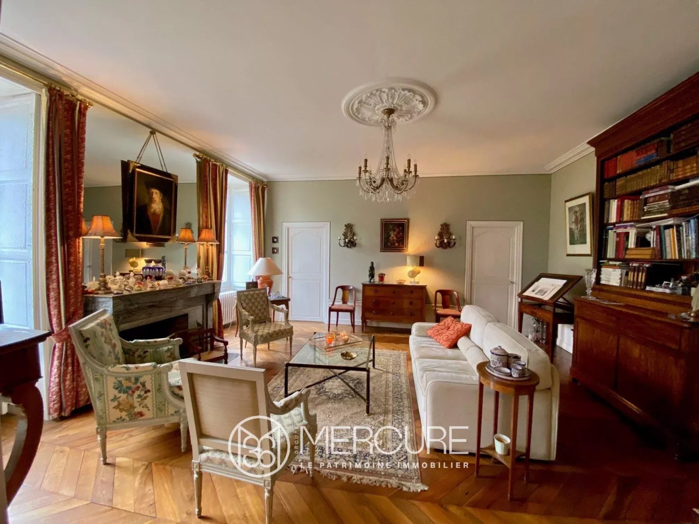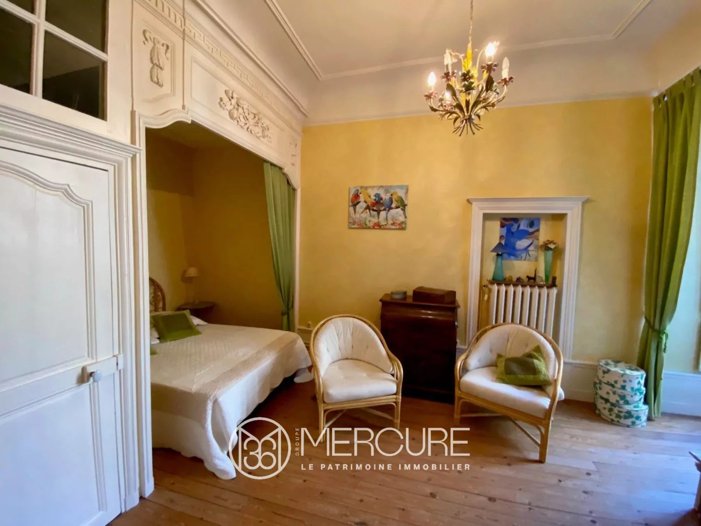 Au 1er étage, entrée faisant également office de bureau avec coin cheminée, cuisine aménagée avec coin repas, pièce attenante faisant office de laverie, salle à manger, salon avec cheminée, le tout orienté Sud sur cour et jardin à la française.