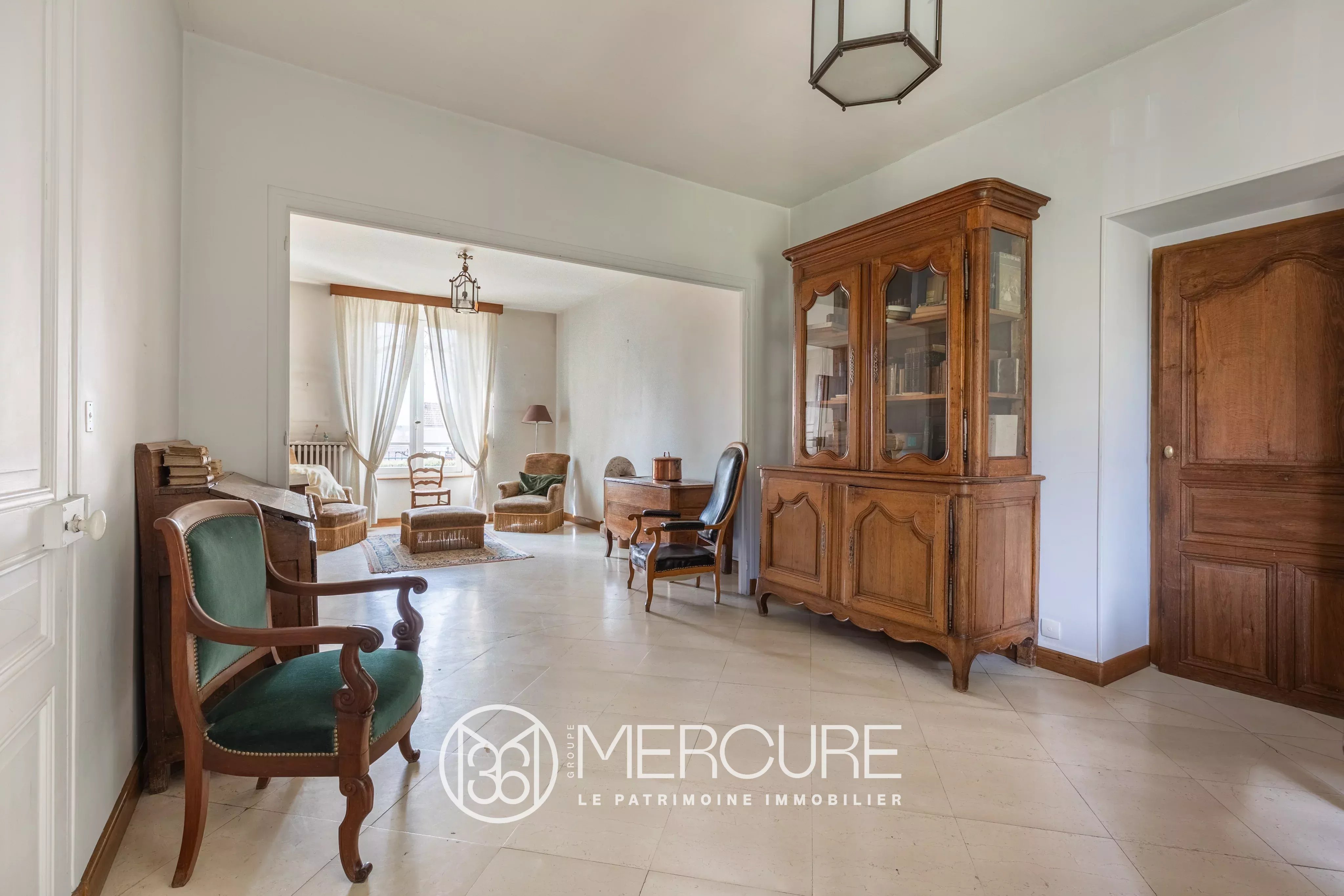 La maison principale d’environ 250 m² s’étend sur trois niveaux. Avec sa façade sobre, elle dévoile des volumes généreux, un salon en double exposition avec son sol en pierre naturelle, des carreaux de ciment anciens magnifiquement préservés, des portes en chêne massif d’origine et les parquets d’époque, contribuent à préserver le charme et l’âme authentique des la maison.