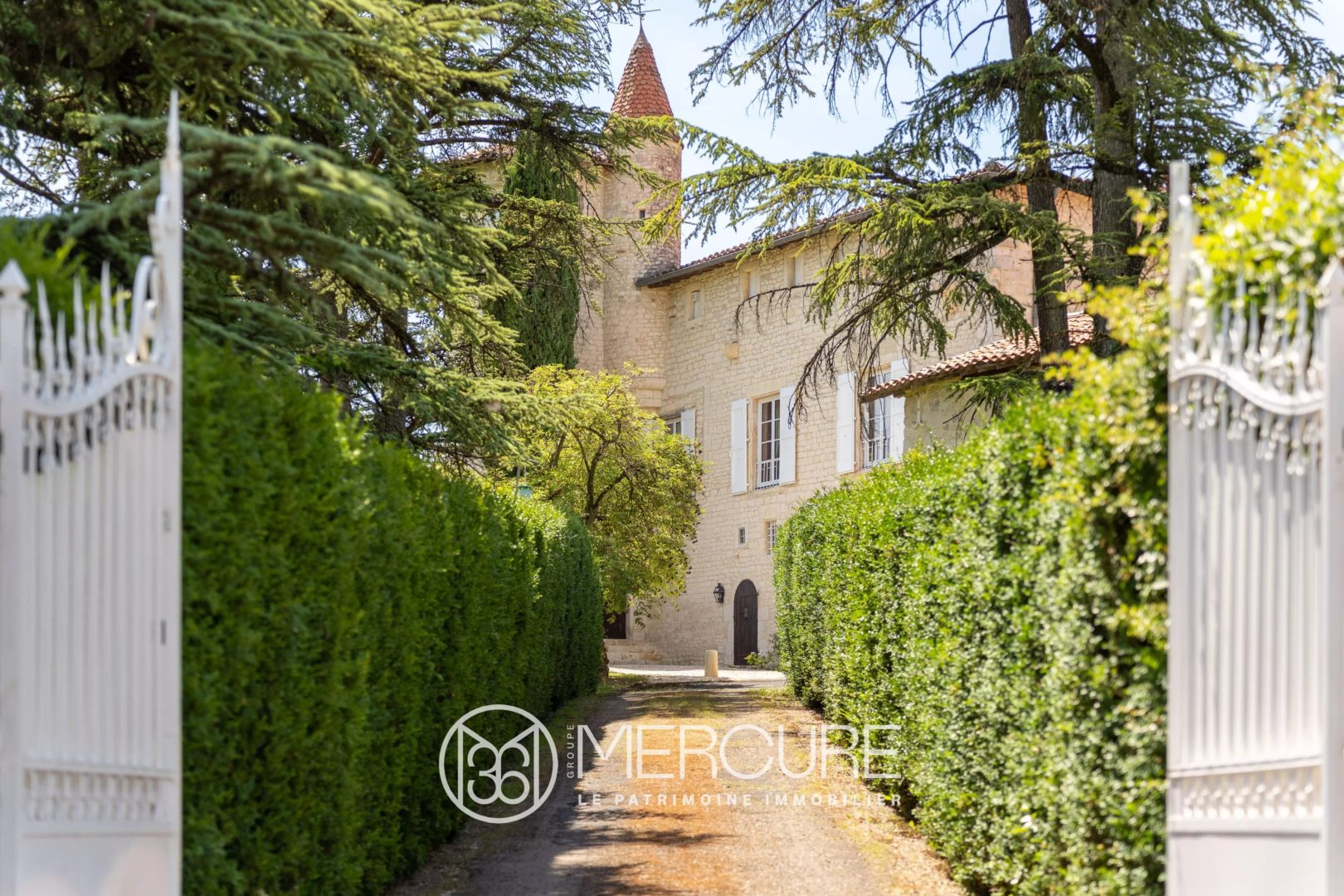 La propriété est composée d’une belle demeure en pierres de taille, flanquée de deux tours, et dispose de deux appartements. Le plus vaste, de 230 m² environ, occupe le premier étage et la tour Est. Le deuxième appartement de plain pied, avec accès indépendant, occupe 110m² environ du rez de jardin. Enfin, un ancien pigeonnier de 30m² environ, aménagé avec un coin cuisine, un coin nuit, une salle d’eau avec toilettes se dresse au milieu du jardin paysagé.