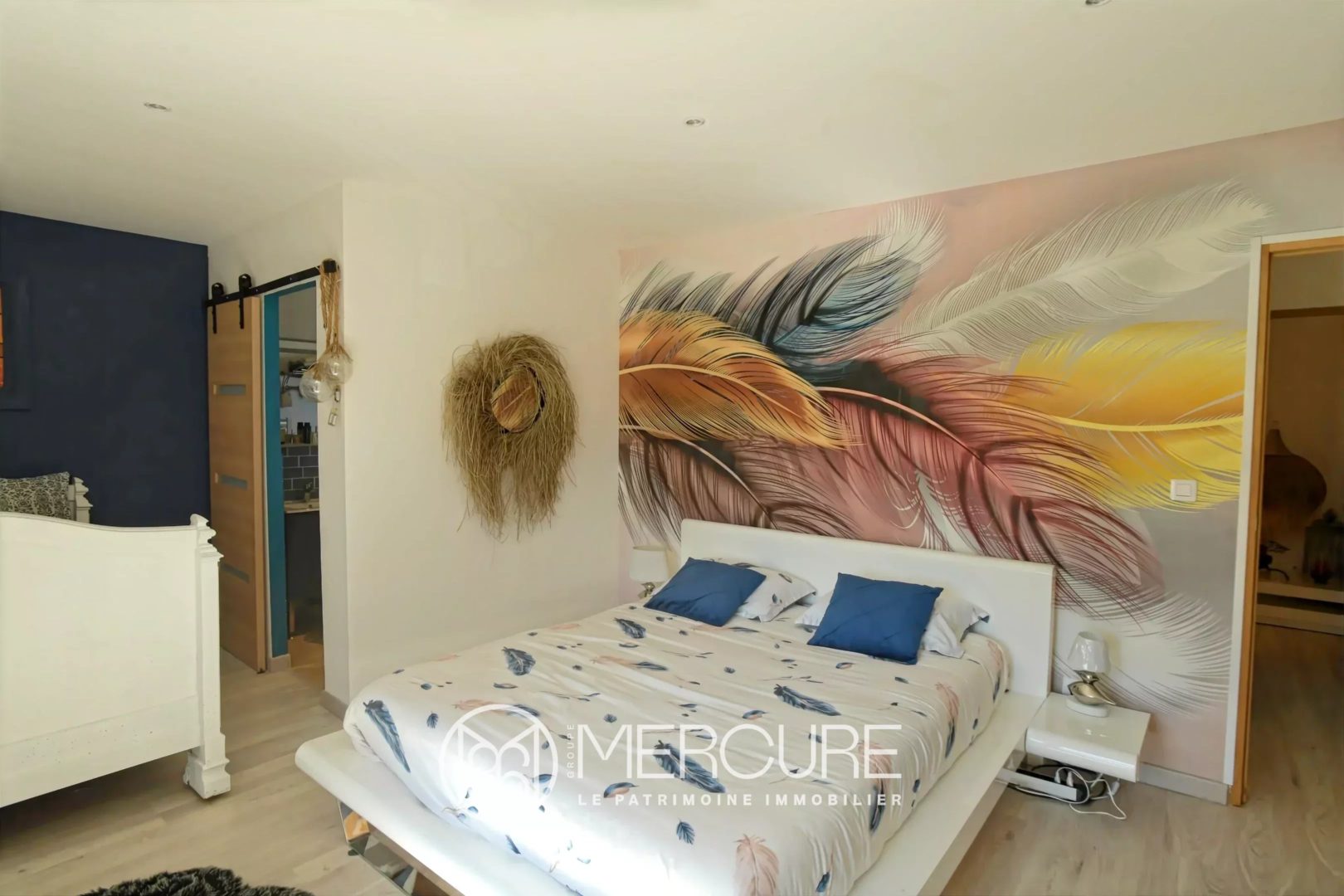 Cette bâtisse de 220m² s’articule sur 2 niveaux de 7 pièces dont au rez de chaussée une pièce de vie de 44 m2, une très grande cuisine, une buanderie, 1 wc .
