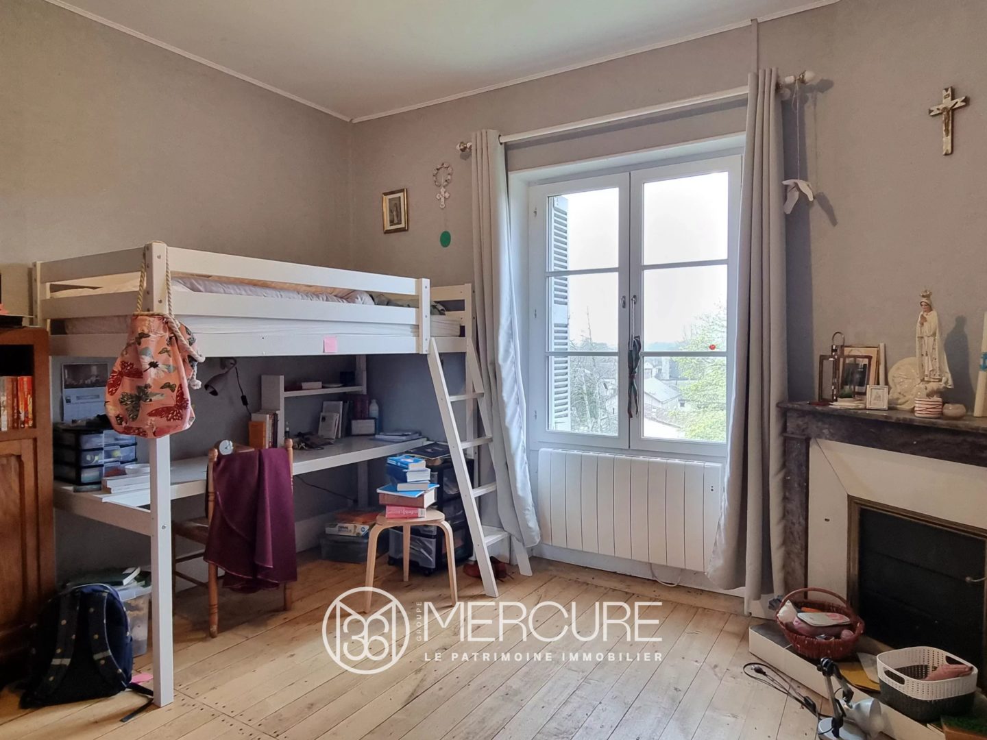 La maison bénéficie d’un chauffage central au fioul pour les deux premiers niveaux, d’un chauffage électrique pour le dernier et de poêles à bois pour le rez-de-chaussée, ainsi que du double vitrage et du tout-à-l’égout.