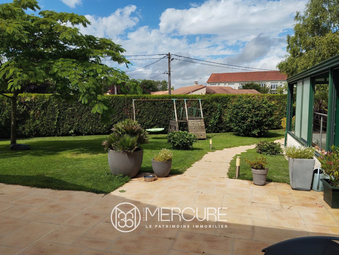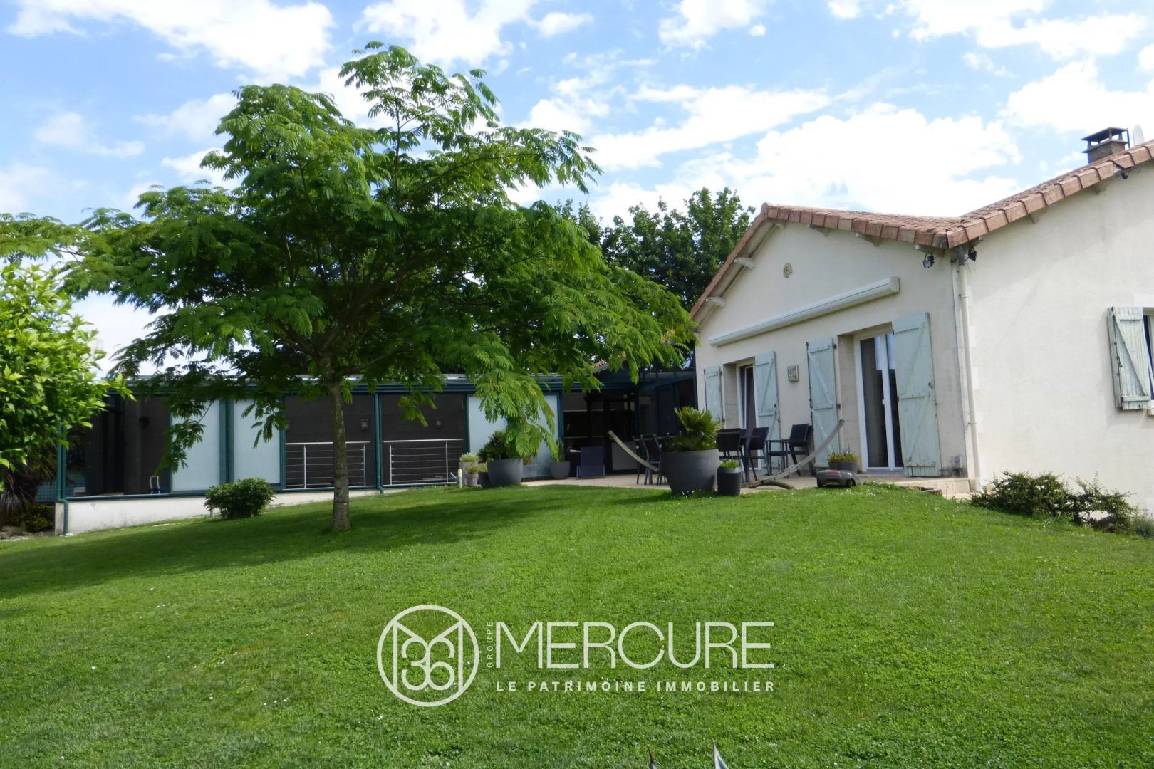 Une grande piscine sous véranda, accessible depuis la cuisine de 105 m².