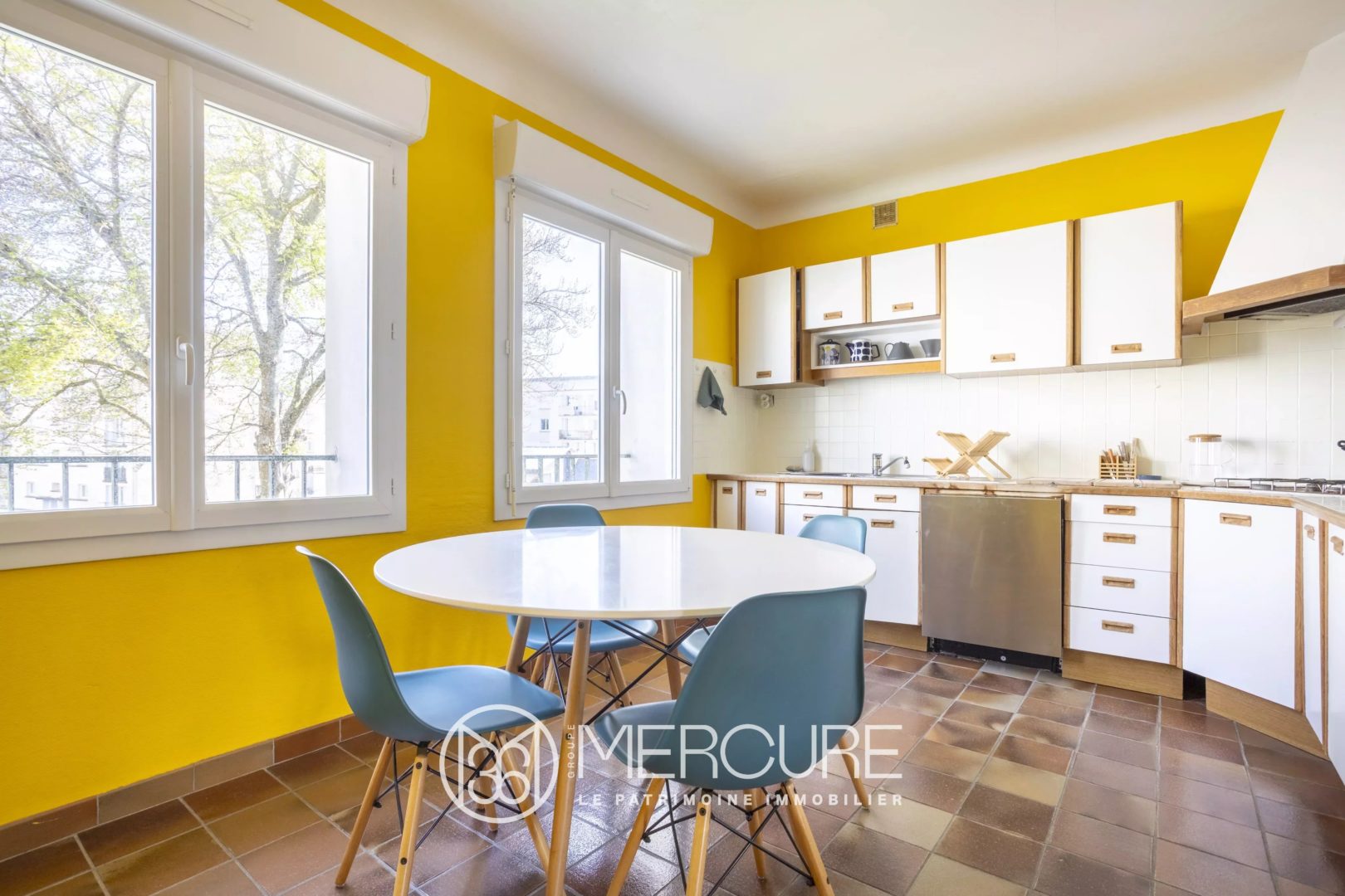 Au calme d’une petite rue pavillonnaire, à 5mn du tram et des Capucins, cette haute maison construite par un fameux architecte brestois offre de grands volumes lumineux, et se prête à différents usages grâce à une astucieuse distribution.