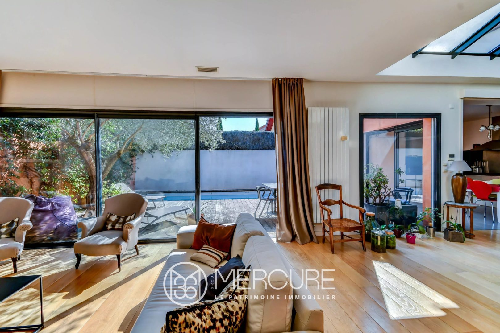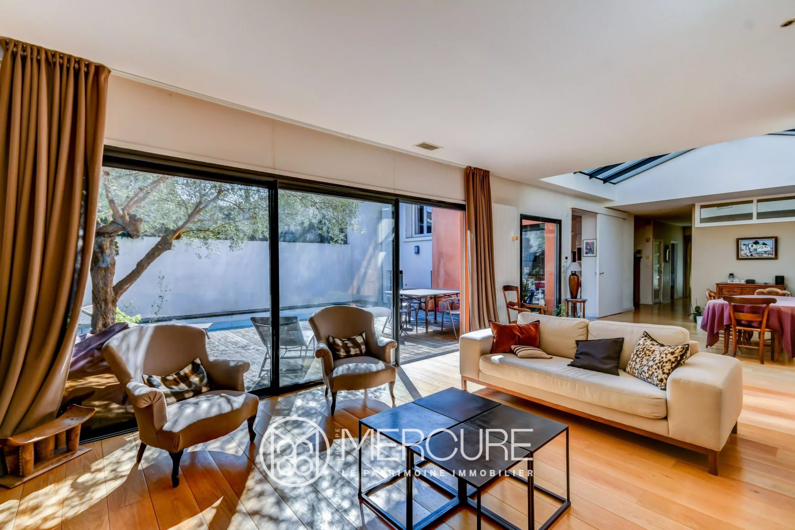 Dans une rue recherchée pour son calme et sa proximité avec les écoles, cette belle maison des années 1930 de 185 m² rénovée avec gout, très lumineuse, offre une rare pièce de vie de plus de 50 m² avec cheminée/insert. Cette pièce principale, ainsi que la cuisine, s’ouvrent sur le grand patio et sa piscine sans vis à vis, et donnent à cette maison un air de vacances.