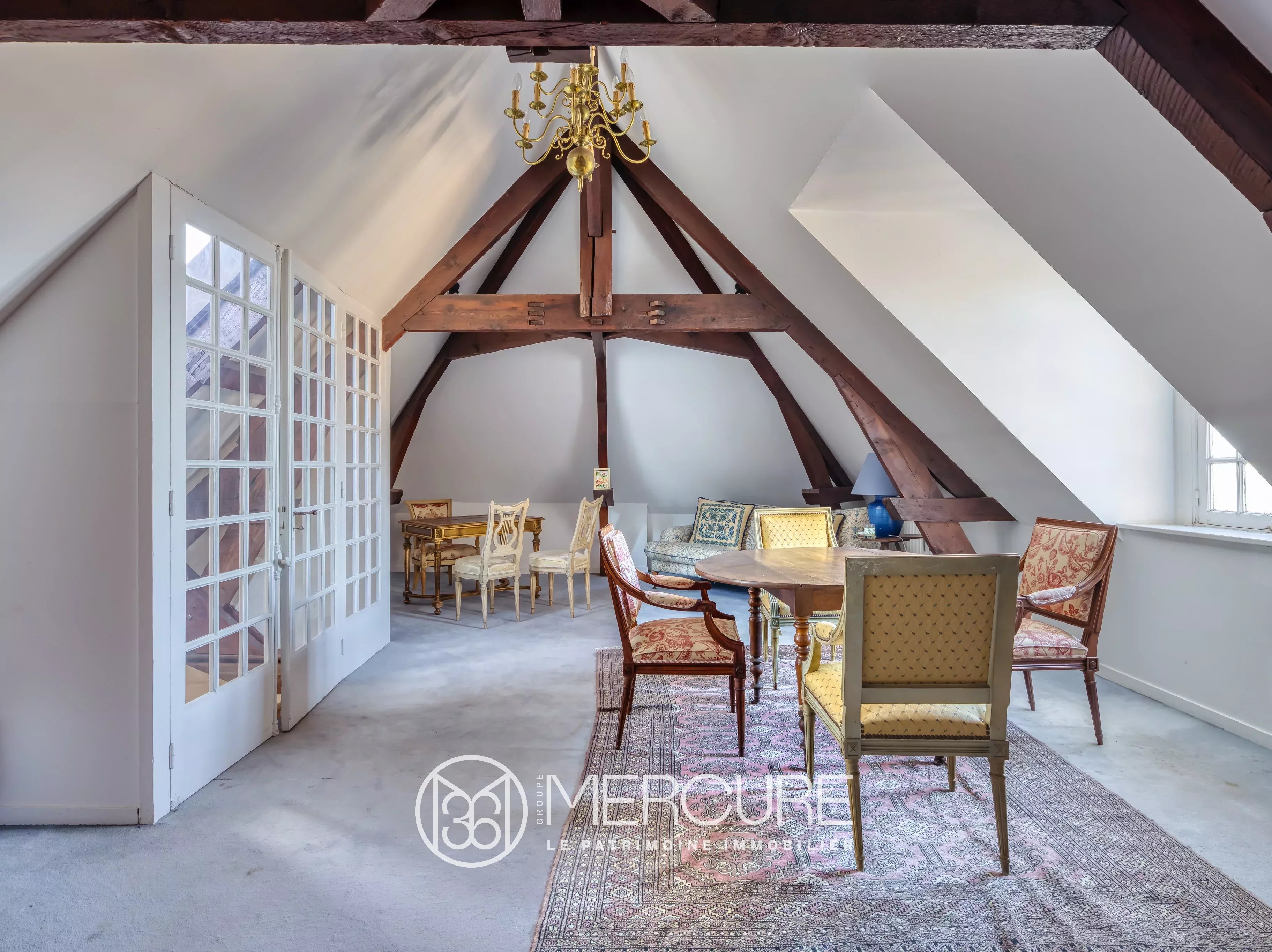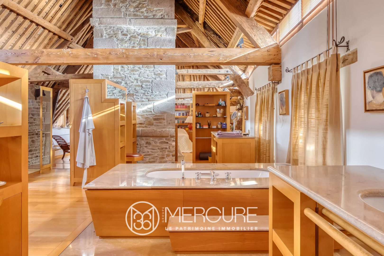 Accessible par un escalier secondaire, une master bedroom spectaculaire de 120 m², avec baignoire centrale, douche, WC indépendant et nombreux rangements. La charpente entièrement apparente confère à cet espace un caractère grandiose.