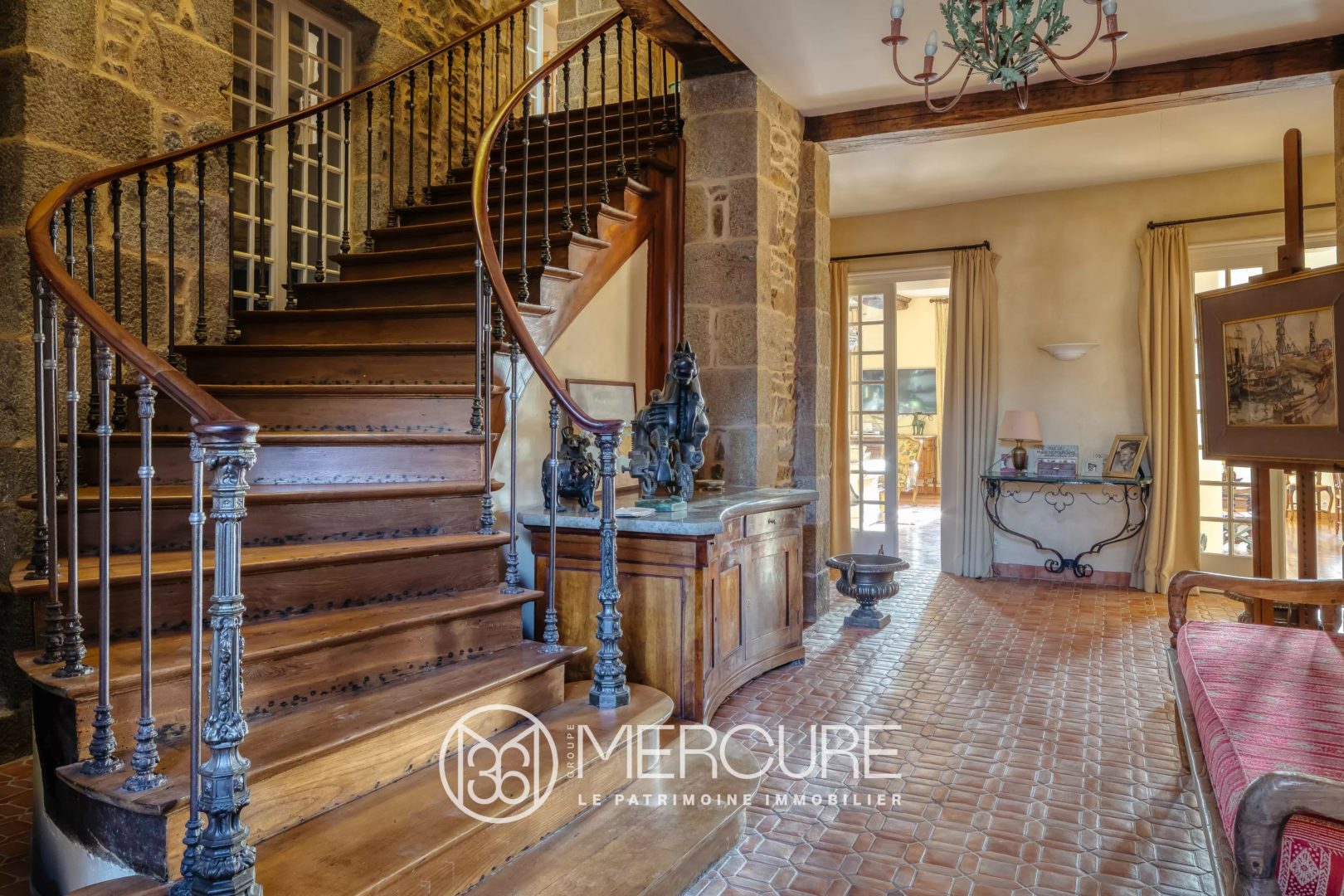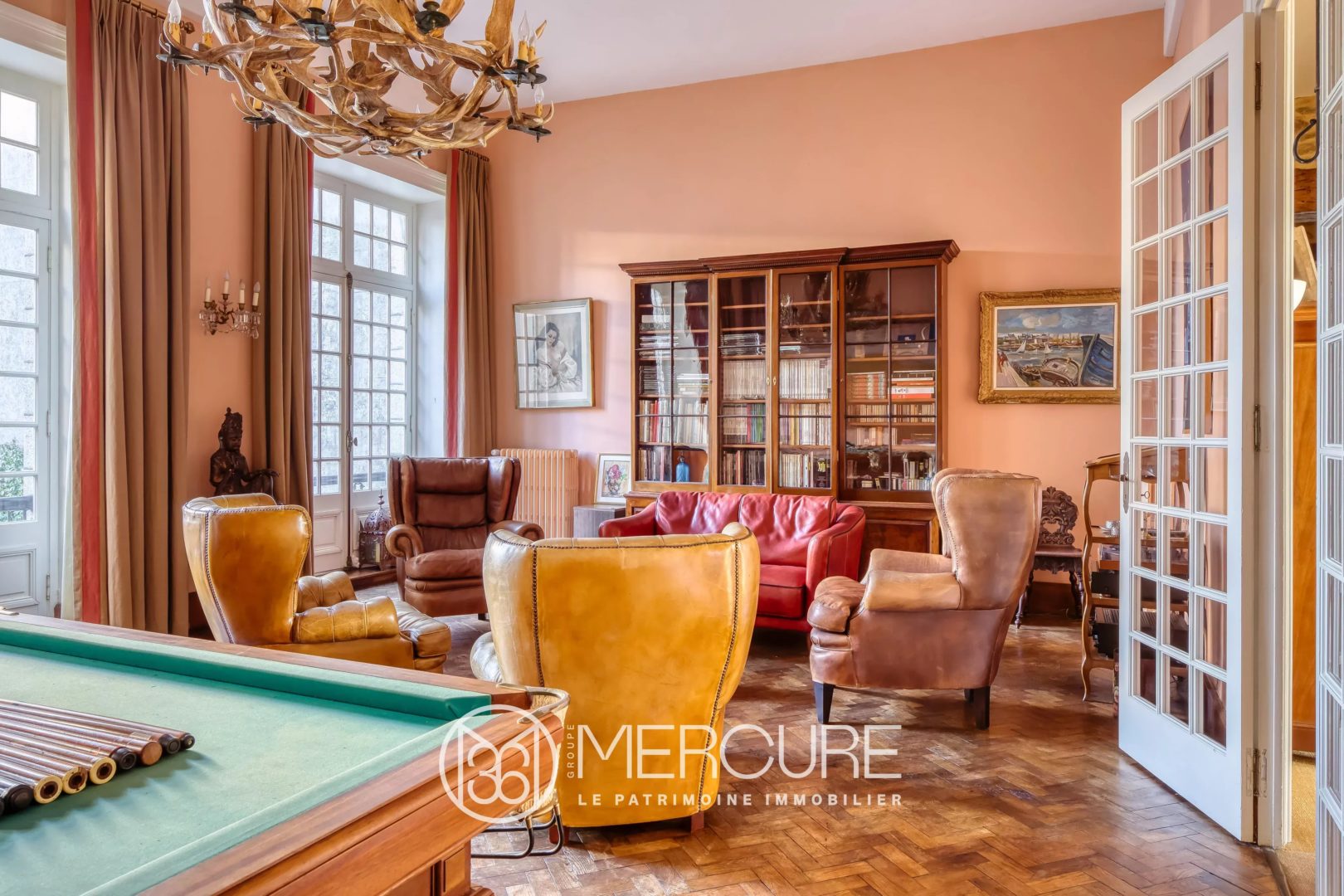 – une distribution intérieure noble avec vestibule d’entrée, escalier de distribution, pièces de réception aux hauts plafonds, boiseries, bibliothèques, cheminées d’époque et salons de loisirs (billard, fumoir).