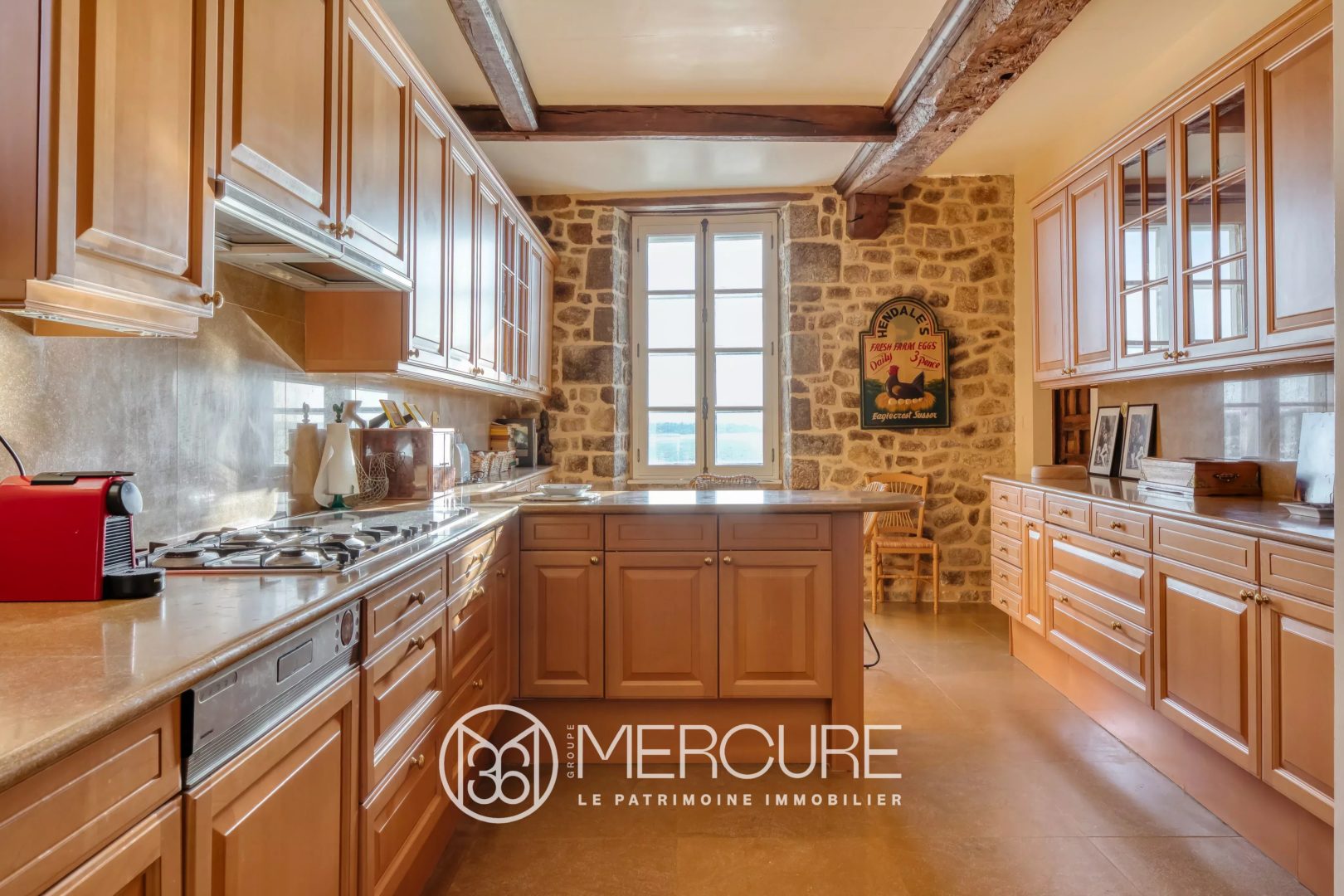 Depuis le séjour, on accède à un ensemble indépendant comprenant une cuisine, un patio couvert et une chambre. Un bel escalier en granit dessert à l’étage de cet espace trois chambres et une salle de bain (environ 80 m²).