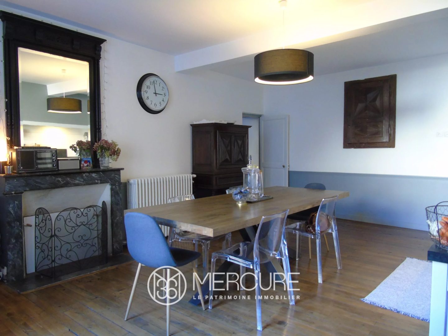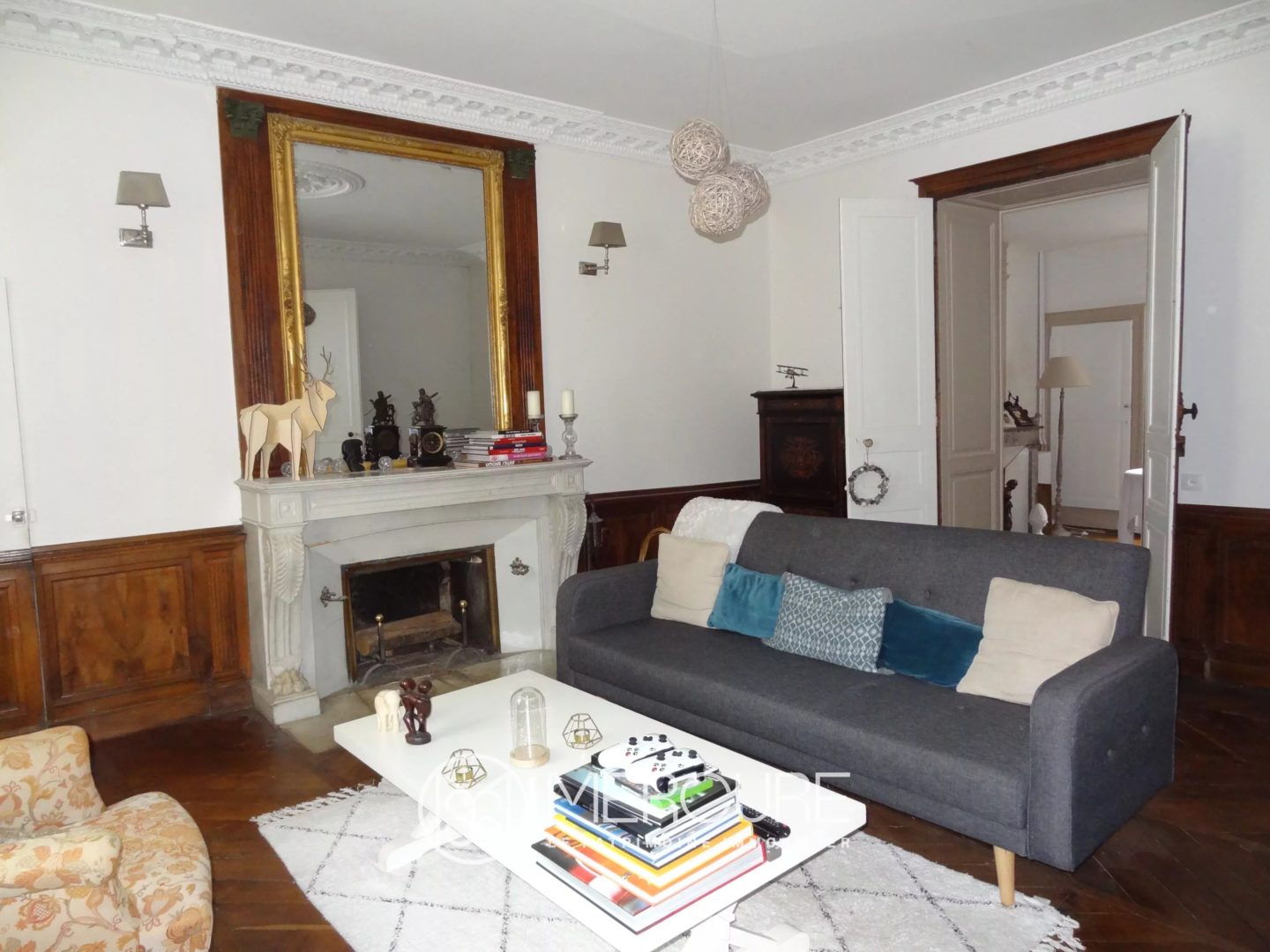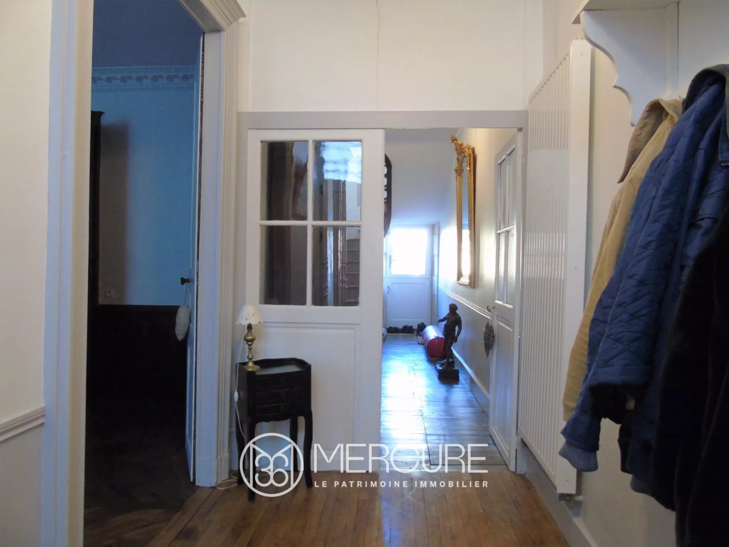 Maison de ville de 260 m² habitables en excellent état. 5 chambres, 1 bureau, lingerie. Cave, garage et jardin avec dépendances. Éléments d’authenticité (Boiseries, parquet, plancher, cheminée…)