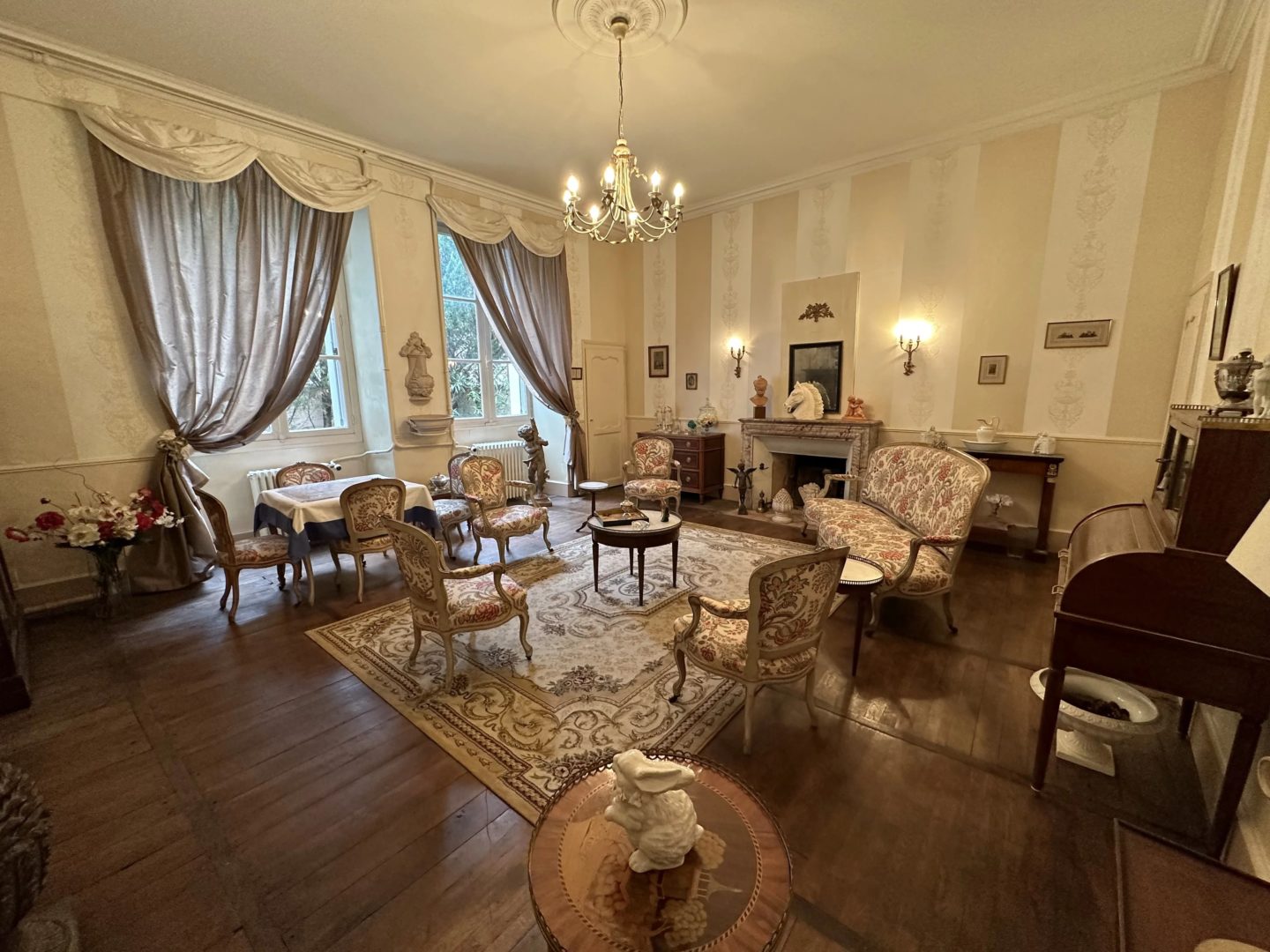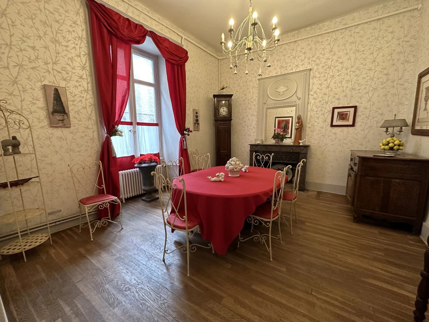 -Salle à manger sur parquet chêne droit avec cheminée (17,02 m²)