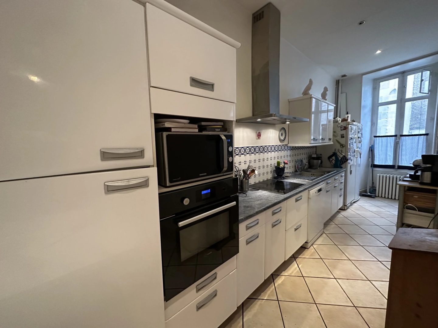 -Cuisine aménagée sur carrelage (12,12 m²)