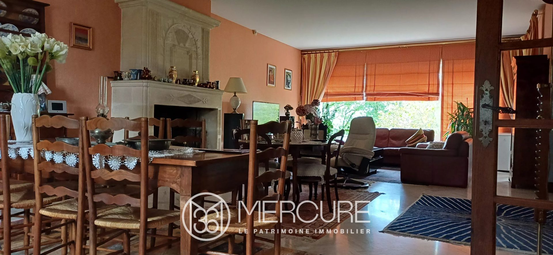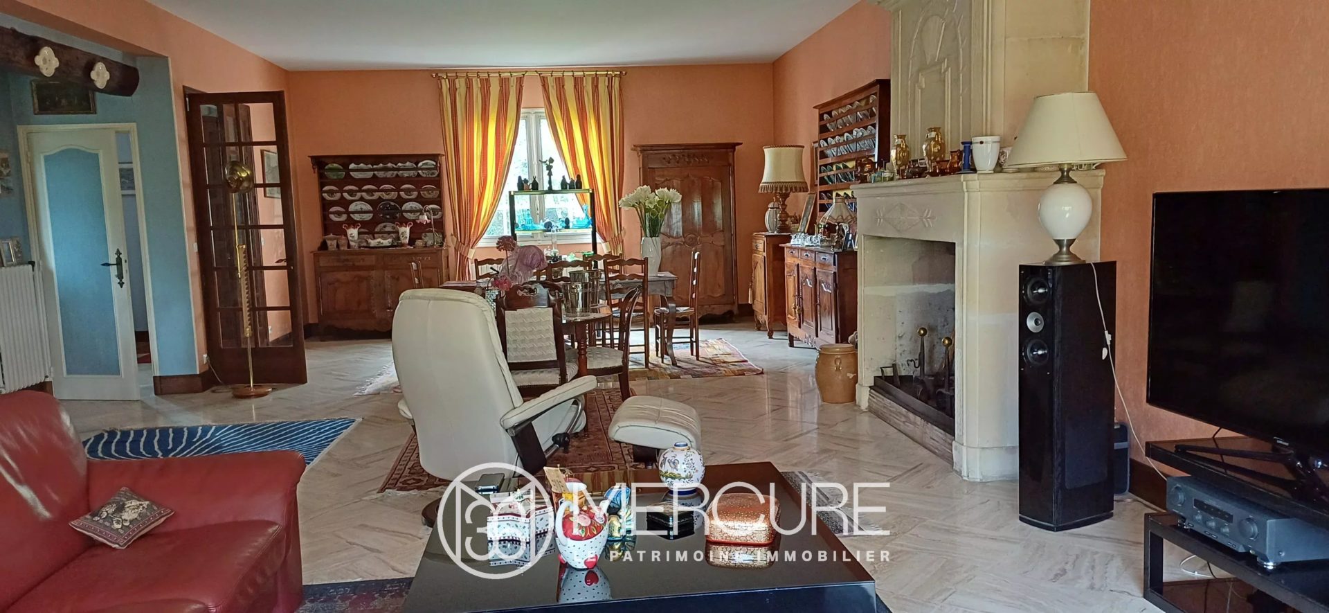 A l’extérieur un magnifique jardin arboré et entretenu sur l’avant, à l’arrière le terrain est en coteau.