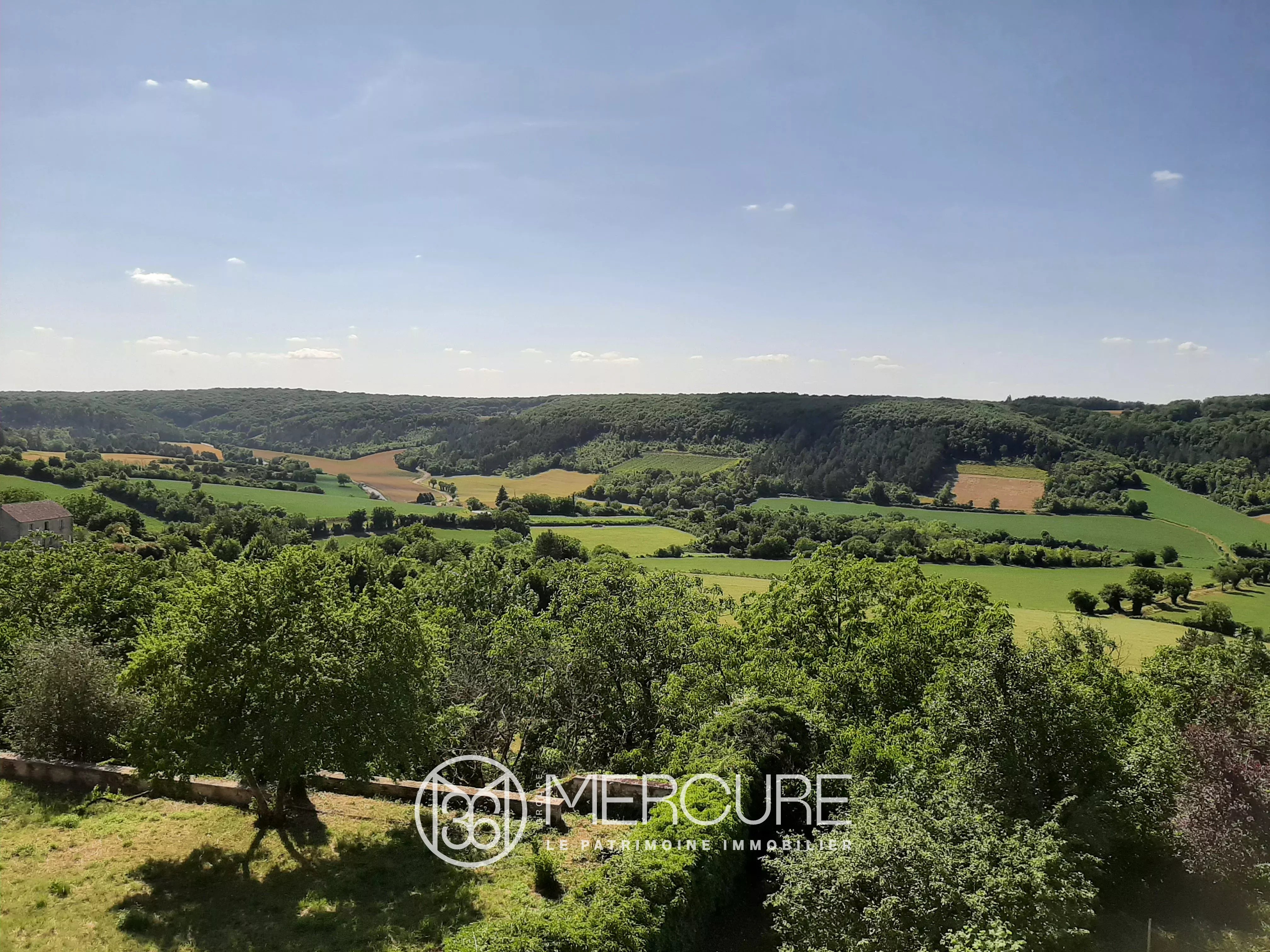 – un terrain constitué d’une cour fermée avec puits, d’un jardin sur 2 niveaux avec vue imprenable sur la campagne.