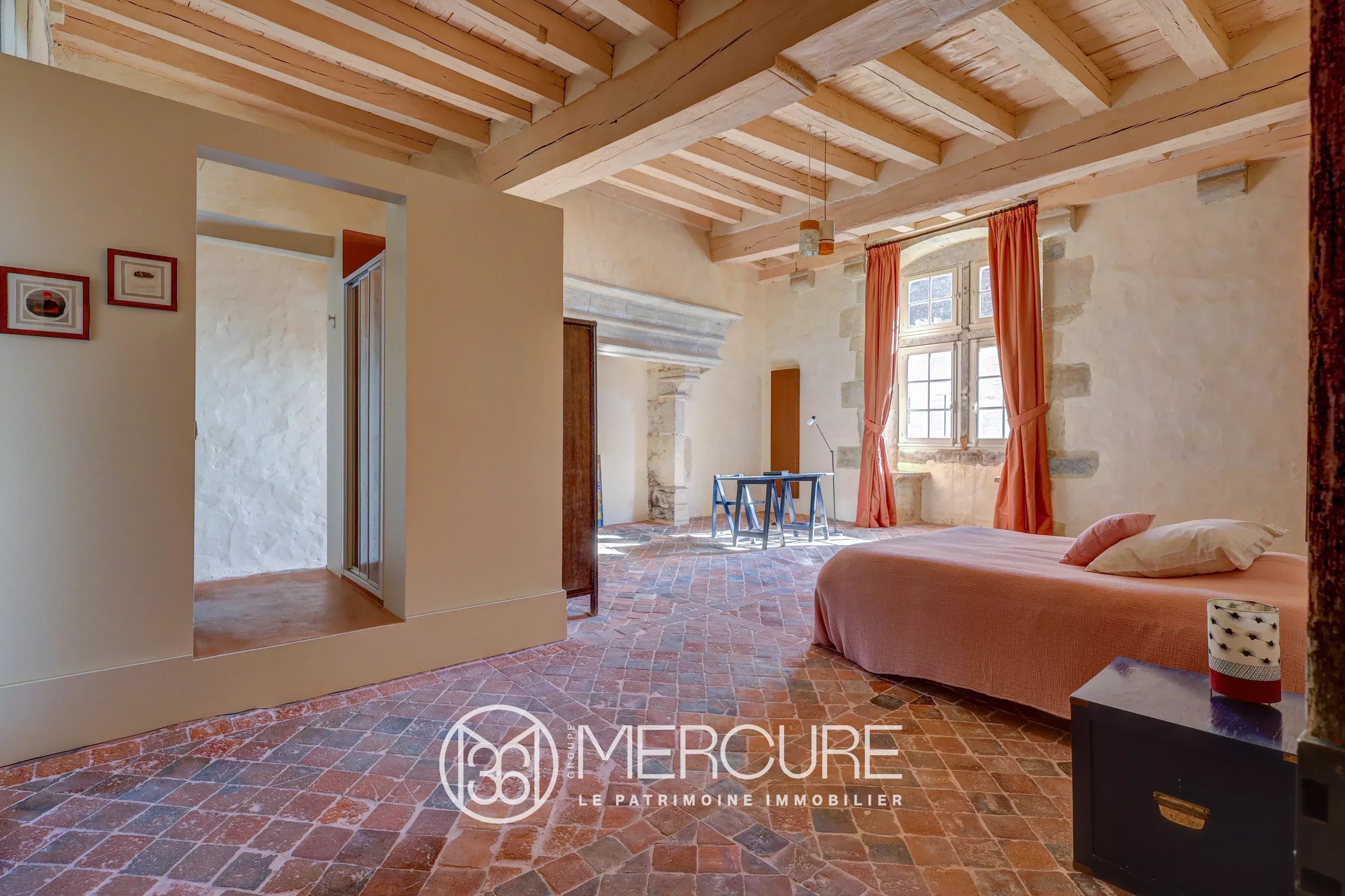 – un logis annexe de 2 pièces dotées de cheminées (une chambre avec salle d’eau, côté jardin.)