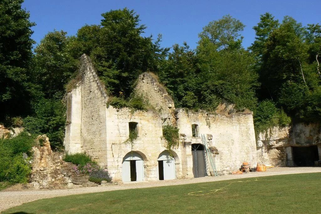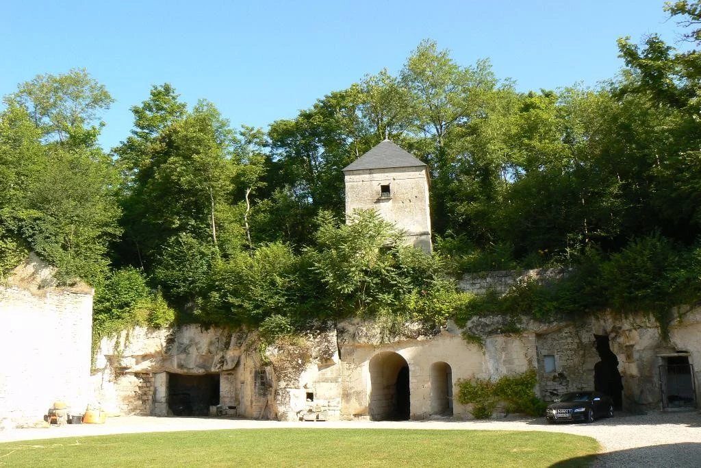 Dans la cour Nord, un colombier élevé sur la falaise et une maison annexe aménagée en garages, accès vers la carrière de pierre formant garages et écuries
