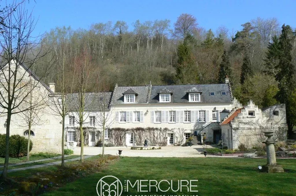 A 10mn de la forêt de Retz et en lisière d’un village avec commerces, cette belle propriété en pierre de taille offre plus de 465m² habitables et bénéficie d’une exposition plein Sud. En bon état général avec de belles prestations : piscine chauffée, ouvrants à double-vitrage, chauffage central au gaz de ville, assainissement communal, etc. La maison principale de 14 pièces est complétée par deux suites indépendantes et une grange attenante à usage de garage.Une activité de chambres d’hôtes dans cette région touristique à proximité de Paris est tout à fait possible. Entrée, grand séjour éclairé par une vaste verrière, belle cuisine de campagne, 2 chambres, dressing et salle de bains.Grande salon avec cheminée pierre, salon télévision avec cheminée, 2 chambres avec salle de bains, entrée séparée.Palier vers lingerie, 5 chambres en 3 suites, salle d’eau et 2 salles de bains.Dans la cour : 2 suites indépendantes comprenant chambre et salle d’eau.Trois caves chauffées en rez-de-jardin : cuisine d’été, atelier, chaufferie et buanderie. Grange attenante formant garage pour 3 véhicules et grenier.Terrasse bois autour de la piscine chauffée par pompe à chaleur.Parc de 5.15ha : cour plein Sud agrémentée d’un bassin avec fontaine, jardins, paddock et au-delà colline boisée.