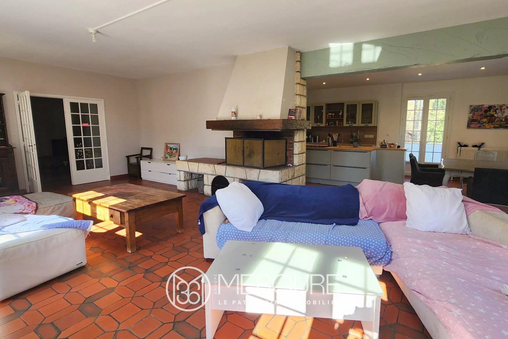 Spacieux séjour de 46 m² avec cheminée et espace repas