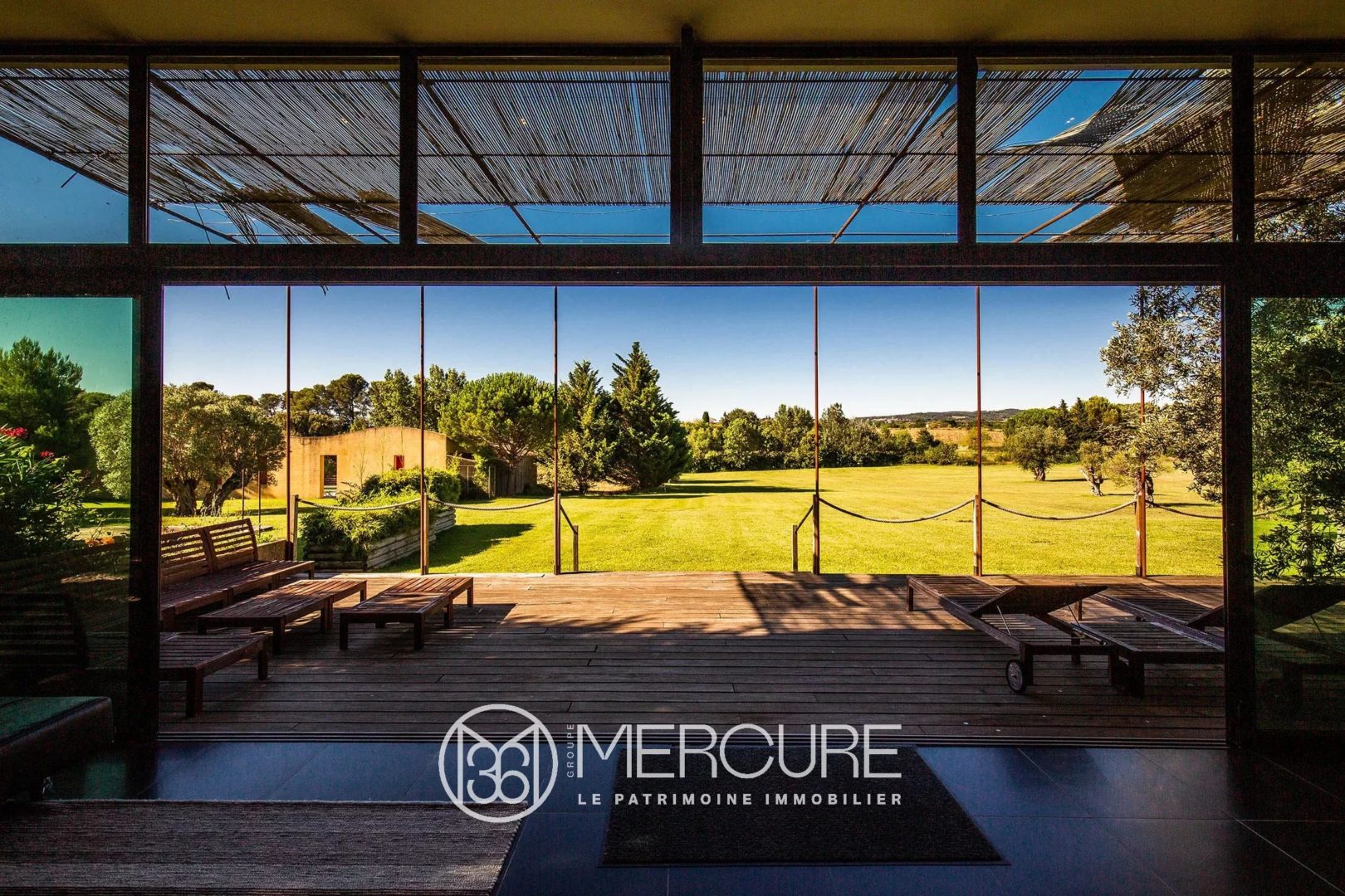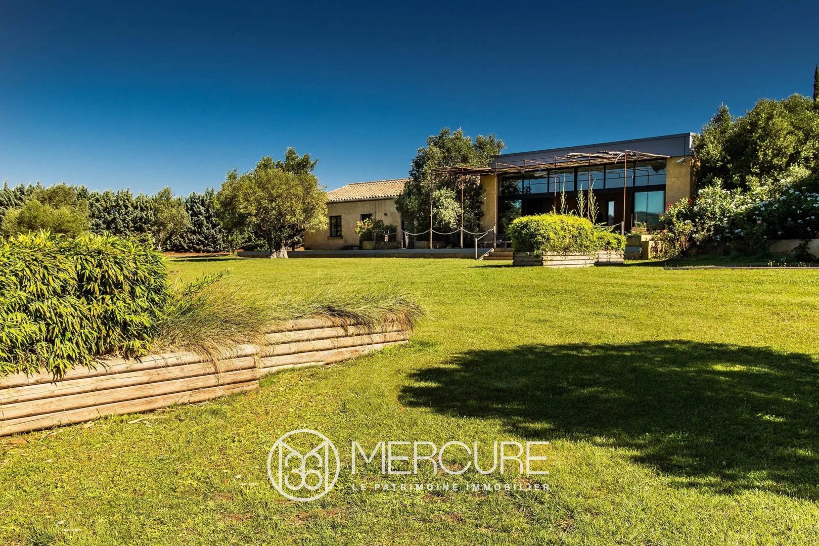Lumineuse villa d’architecte en pierre du Gard, sur 600 m² habitables et plus de 2 hectares de jardin arboré avec vue. En périphérie d’un village et d’un lac, avec piscine et panneaux solaires. A 5 minutes d’une grande ville touristique avec aéroport, et gare à proximité.