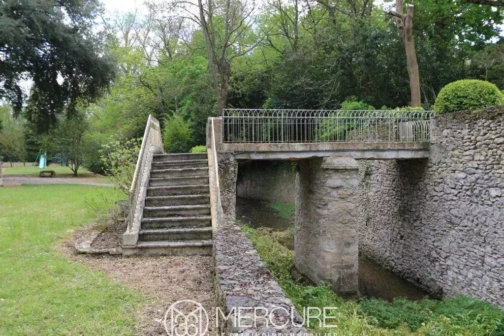 Grande terrasse dominant son parc sans vis à vis traversé par un ruisseau, en face de la maison. Piscine de 12m x 5m et tennis.