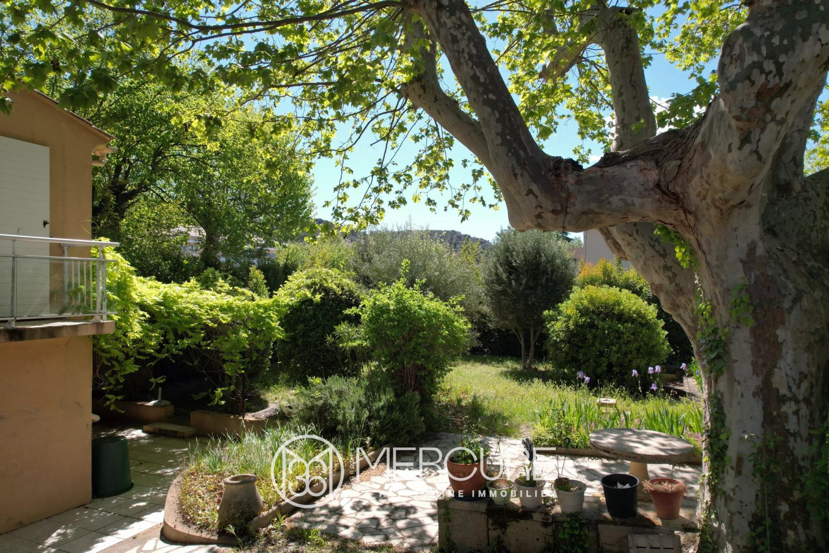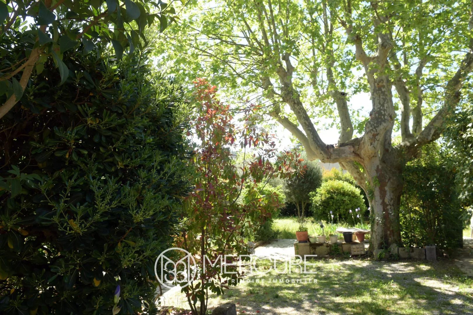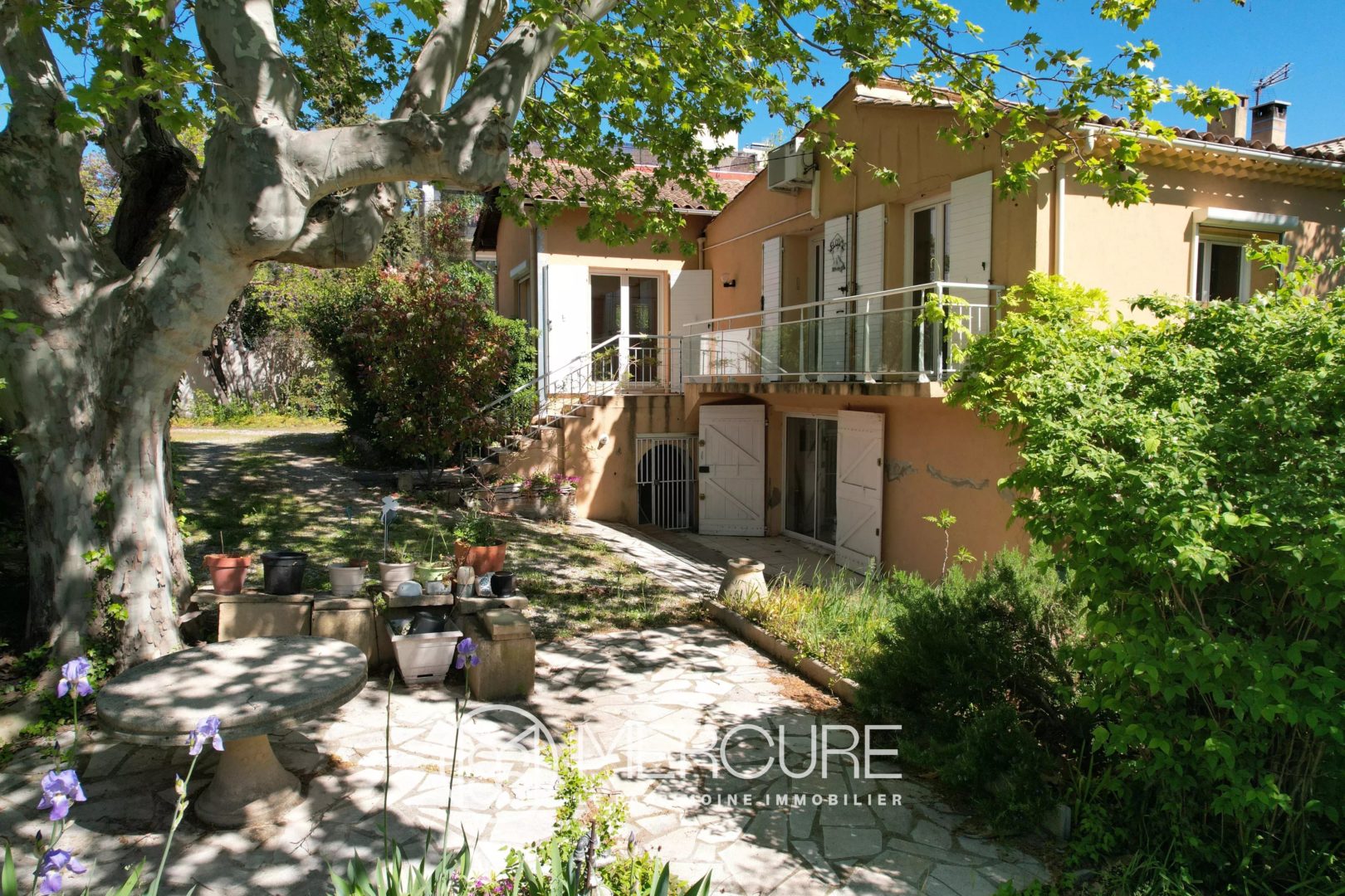 Elle dispose également d’un jardin piscinable, sur une parcelle de belles dimensions pour une maison proche du centre ville, et d’un jardin arboré notamment d’un magnifique platane ancien et d’oliviers.