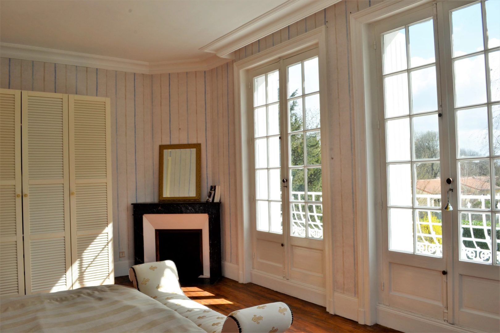– Lumineux salon de 24 m² sur parquet avec cheminée