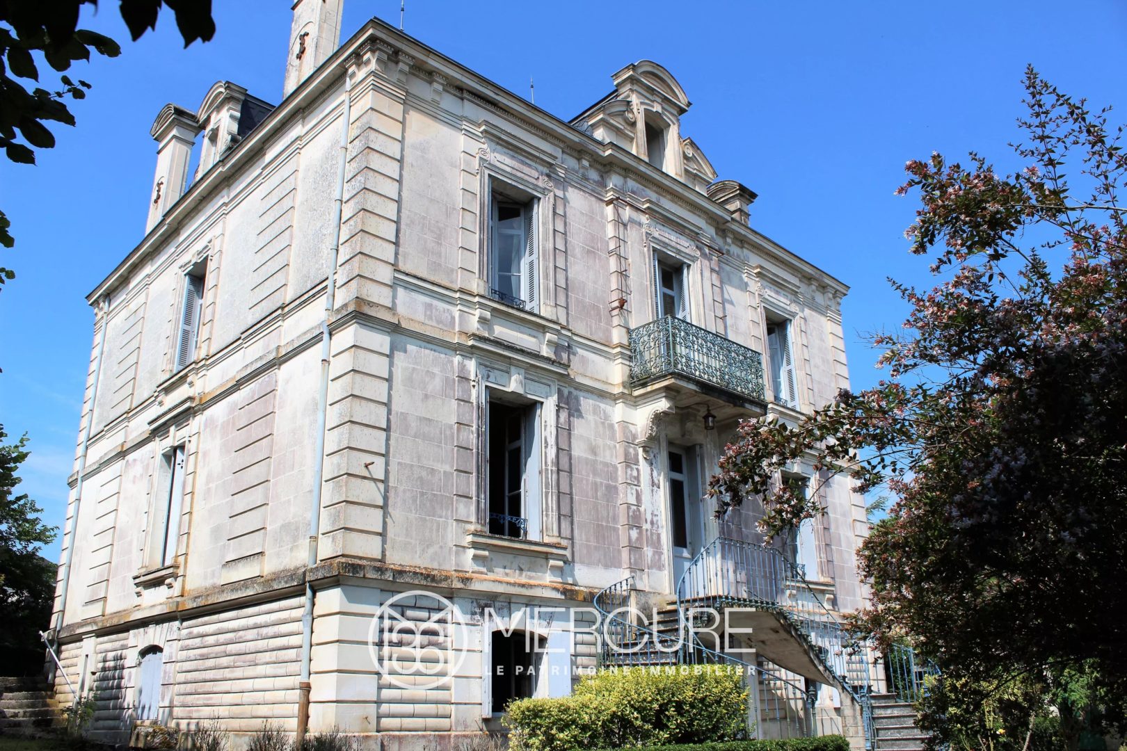 Cette belle maison, typique des demeures bourgeoises du XIXe siècle est située en plein cœur d’un charmant village dynamique bordé par la Charente et bénéficiant des commerces de proximité ainsi que d’une école primaire. A 15 minutes de Saintes et 40 minutes de la côte, la situation est idéale pour une résidence principale mais également pour une maison de famille où se retrouver pour les vacances. L’élégance de son architecture et la présence de matériaux nobles offrent tous les attributs d’une maison de caractère avec parquets, moulures, poutres apparentes, cheminées en marbre et un toit en ardoises essentiel au standing de la bâtisse. A l’extérieur, la sobriété des façades contraste avec son étonnant et remarquable escalier en fer à cheval, témoin d’une audace et d’un modernisme assumé à l’époque de sa réalisation, conférant à cette demeure un cachet indéniable.