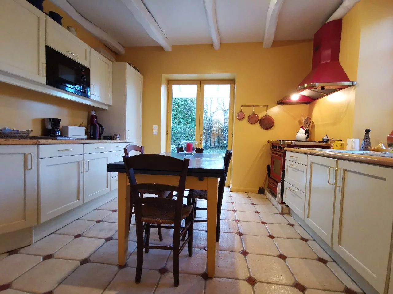 L’entrée sur un sol en terre cuite d’époque distribue une jolie pièce de vie de 60m² environ, une cuisine aménagée et équipée, un bureau, une buanderie.