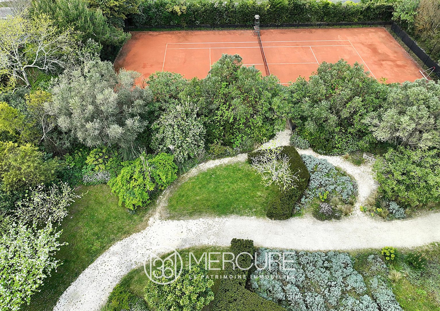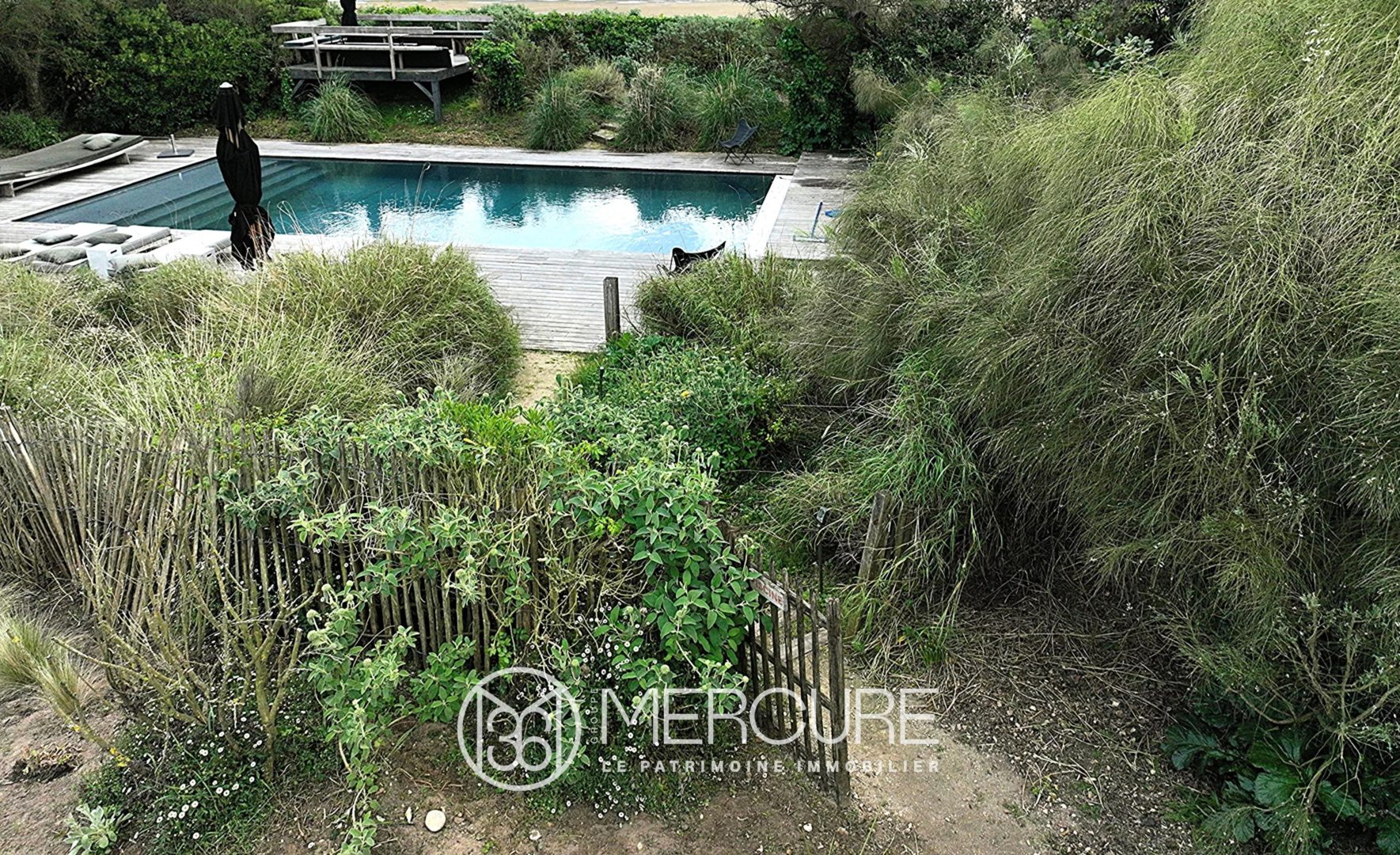 •Jardin paysagé par un architecte de renom : nombreux oliviers, plantes exotiques, graminées et pelouse dans l’esprit « jardin blanc » ; un second jardin dans un esprit « dune », sable et végétation de bord de mer – deux ambiances uniques et complémentaires