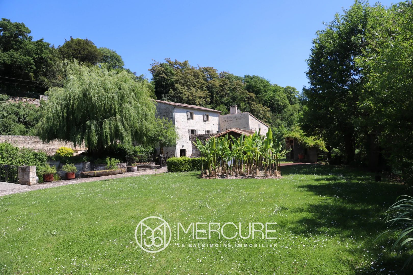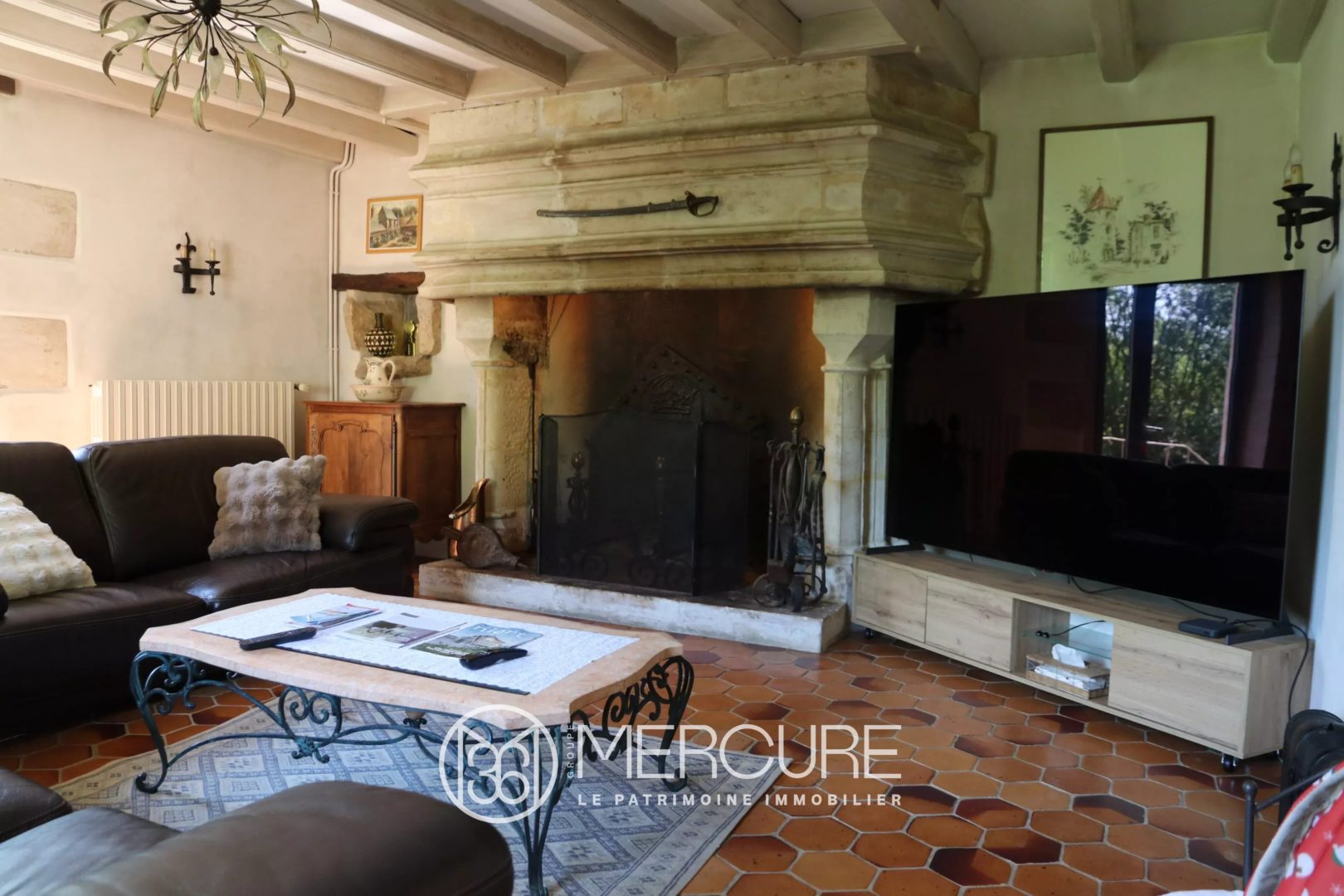 Au rez-de-chaussée, une entrée de 12,27 m² sur tommettes, avec poutres (HSP : 2,42 m), distribue un WC avec lave-mains, sol tommettes, une lingerie-chaufferie de 13,36 m², une cuisine aménagée et équipée de 17,70 m² (HSP : 2,30 m) (frigo américain, lave-vaisselle, gazinière), un espace bureau de 8 m², et un séjour de 56,75 m² comprenant une salle à manger de 29,30 m² avec cheminée en pierre, potager et poutres (HSP : 2,67 m) ouverte sur un salon de 27,45 m² avec magnifique cheminée en pierre et poutres (HSP : 2,67 m).