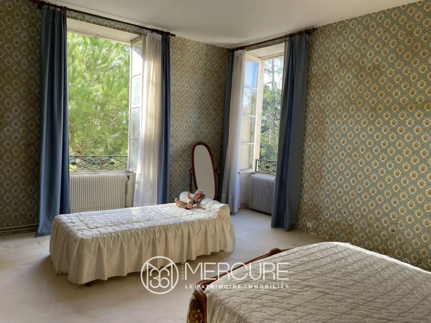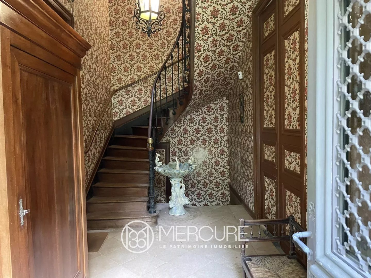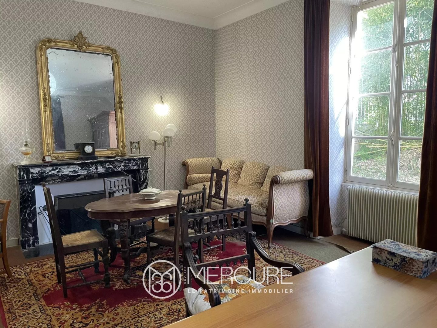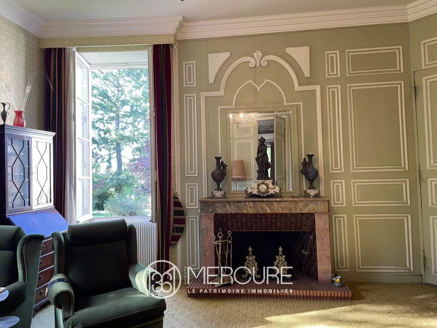 Dans la demeure, l’entrée 10,34 m² vous accueille sur un dallage pierre (HSP : 3,26m) distribuant à droite un bureau/salon de 25,69 m² avec cheminée en marbre en état de fonctionnement. A gauche, vous entrez dans le grand salon sur parquet moquetté (27 ,63 m²), avec une belle cheminée en marbre et de nombreux placards. Cette pièce ouvre sur la salle à manger sur parquet (30,75 m²), avec cheminée en pierre, ouvrant sur la terrasse. Cette dernière pourrait se transformer en une cuisine dinatoire, en conservant l’actuelle petite cuisine comme cellier.