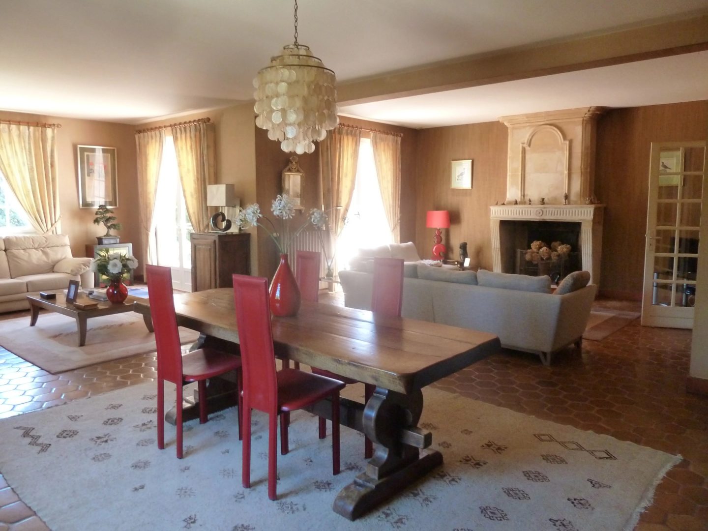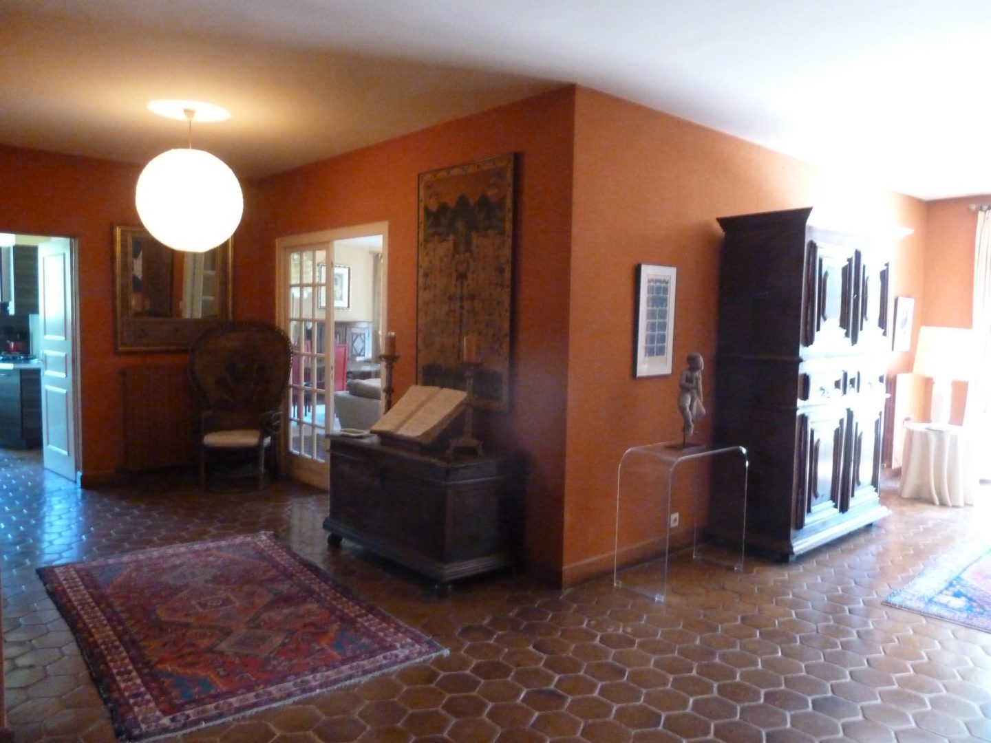 Sols en partie sur tommettes, en partie moquette sur chape