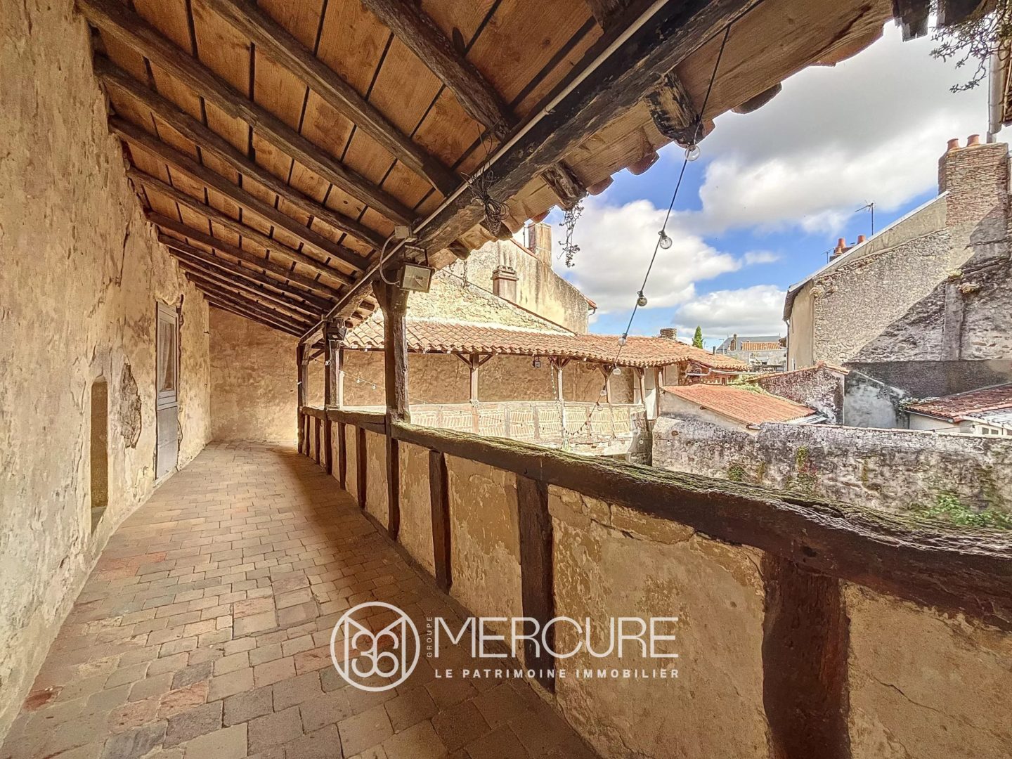 Située au coeur de la ville de Parthenay, cette étonnante maison de caractère de 269 m² habitables offre cinq chambres, deux salles de bains, et une cour intérieure pavée surmontée d’une coursive sur deux côtés.