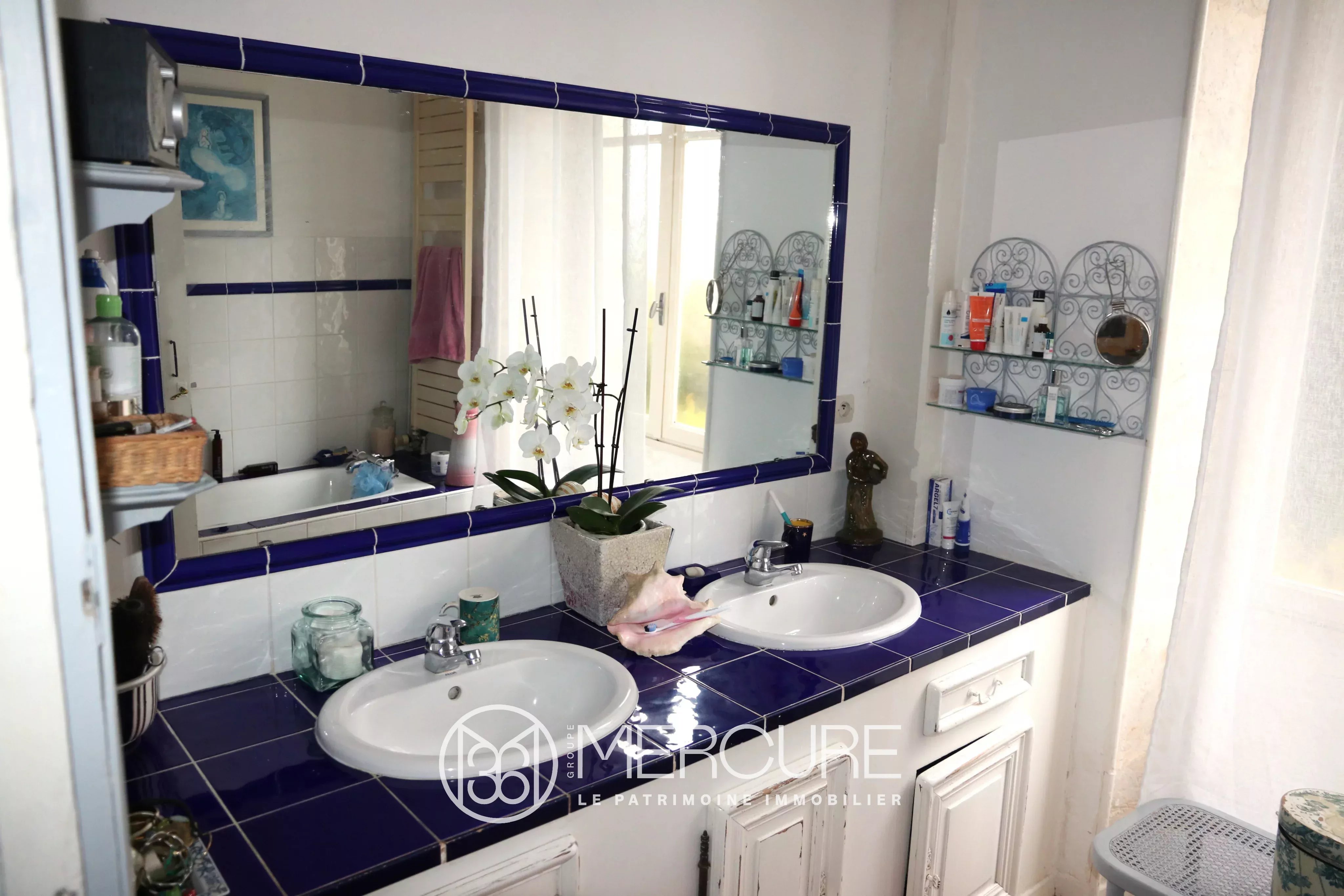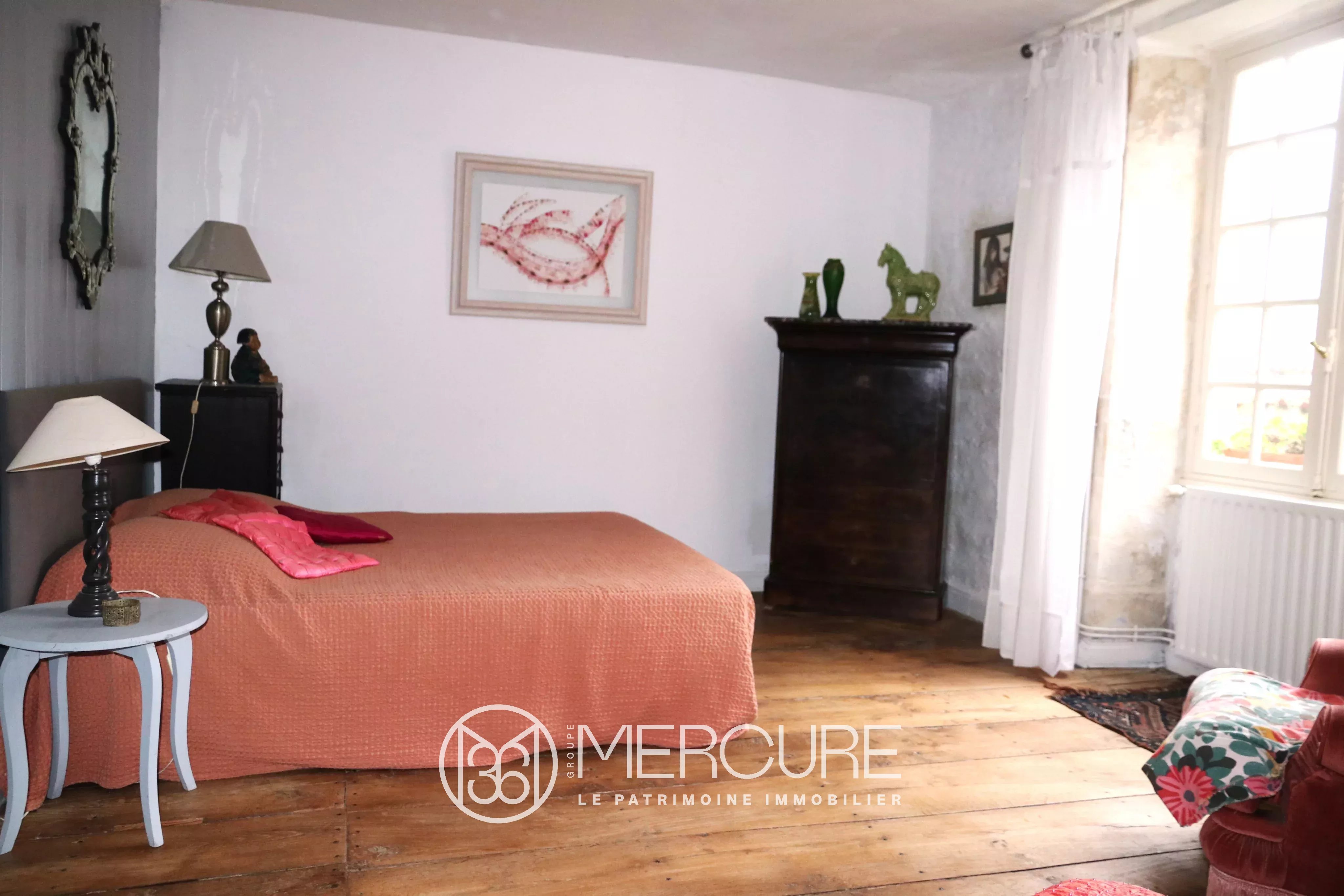 Au premier étage, le palier sur plancher mène à une chambre sur plancher d’origine (17,40 m²), son dressing (7,60 m²), et WC privatif (2,20 m²). Le palier ouvre également sur une salle de bain avec double vasque et baignoire, sur plancher (6,40 m²), et sur une autre chambre sur plancher avec cheminée (30 m²).