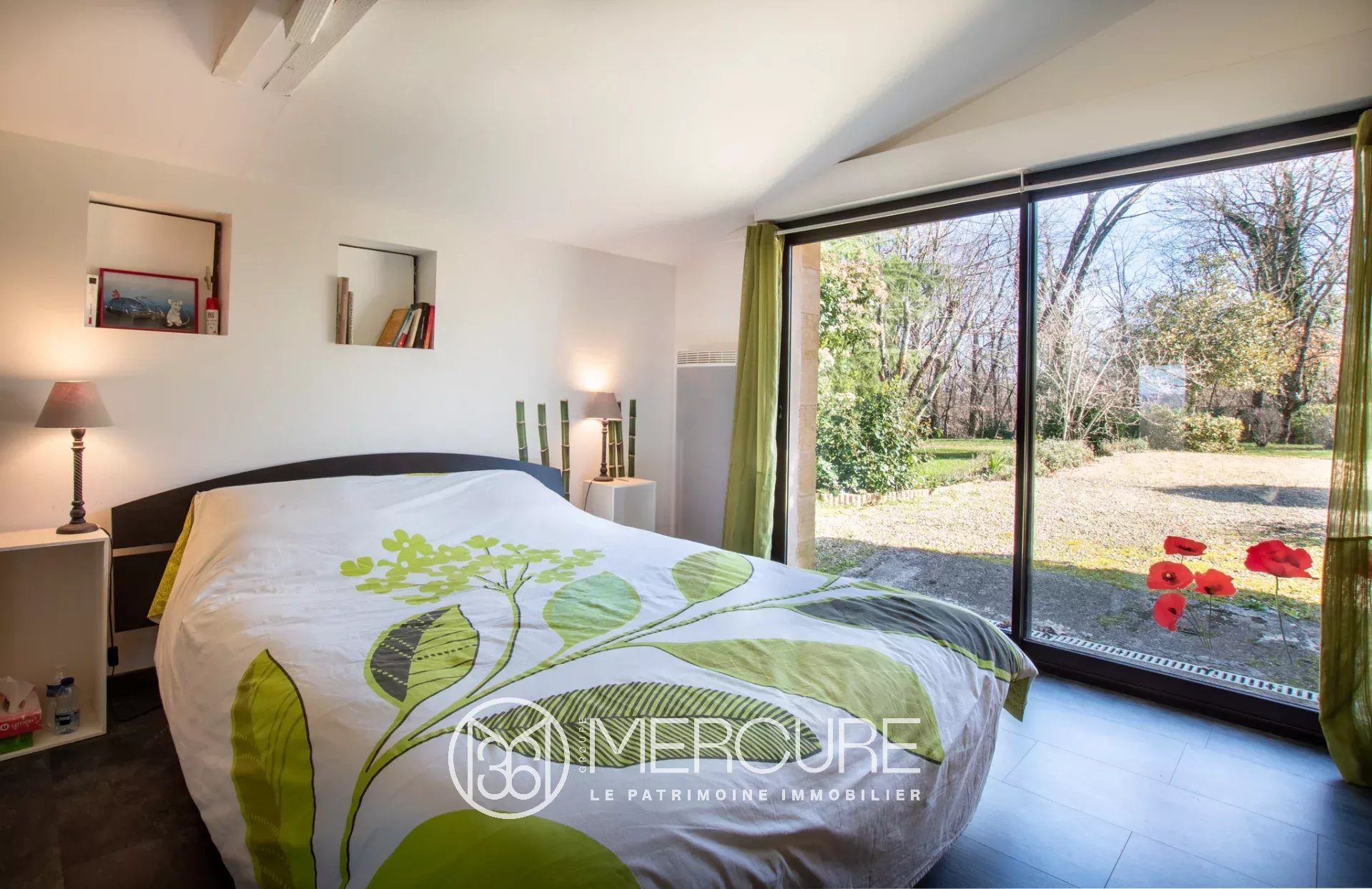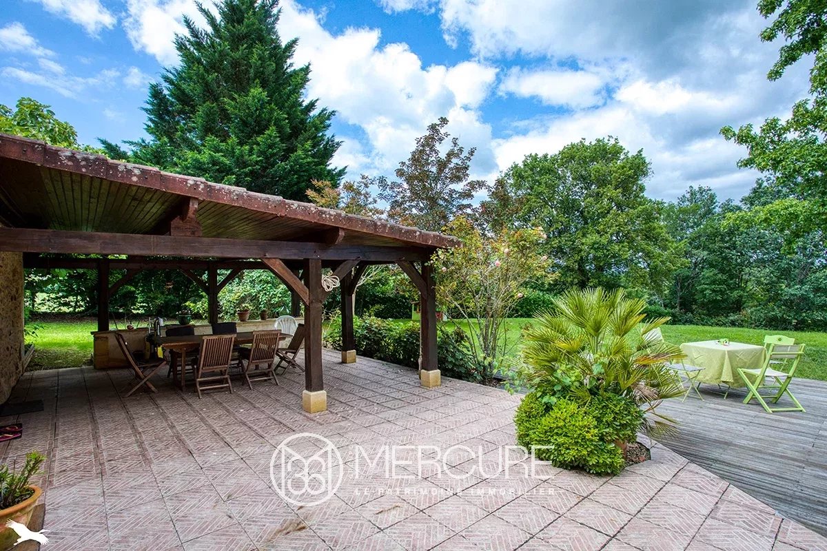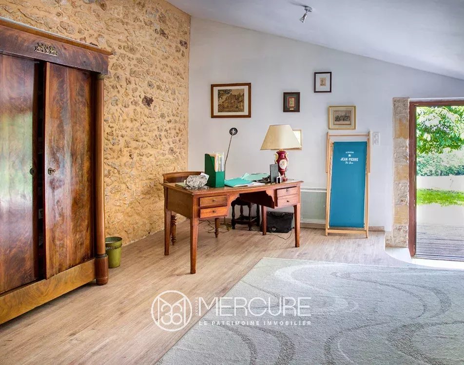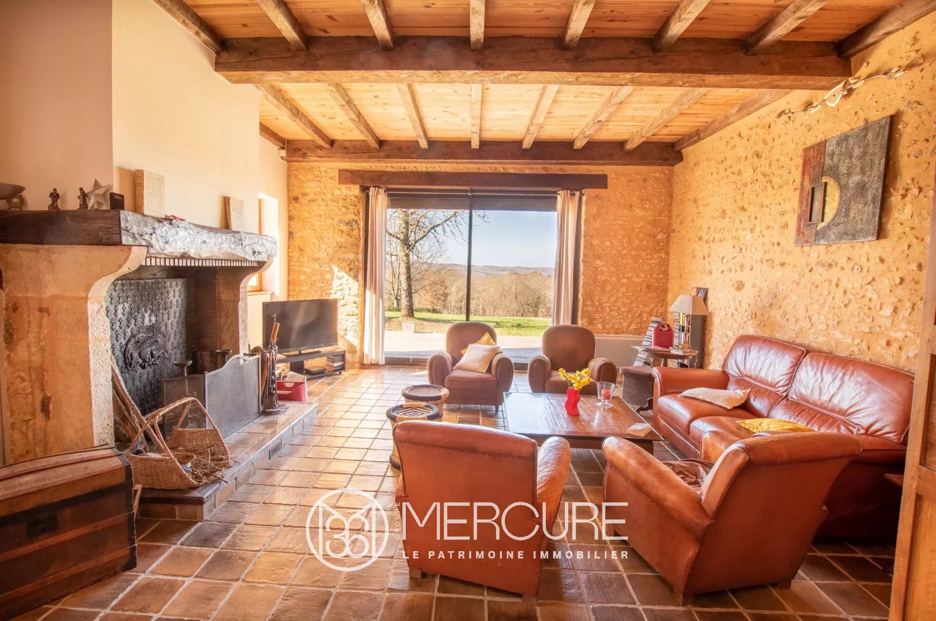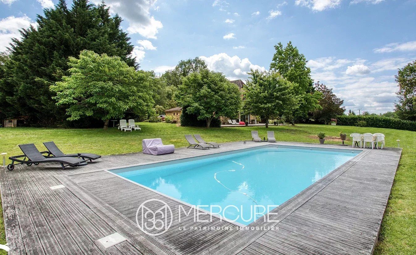 Au rez-de-chaussée un salon lumineux avec cheminée en pierre s’ouvre largement sur la terrasse. Une entrée, une salle à manger, une cuisine spacieuse ainsi que 2 chambres avec salle d’eau sont disposés de plain-pied. Large terrasse abritée, barbecue et four à pain. Au 1er étage, 2 chambres et 2 salles d’eau. Piscine chauffée avec volet roulant, abri de jardin et puits. Le terrain de 3ha est entièrement clôturé, portail automatique.