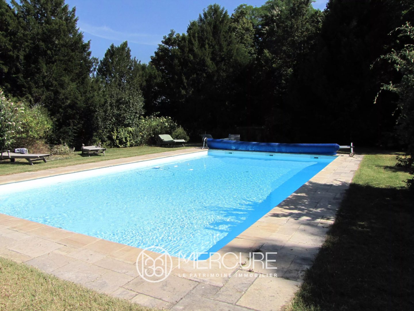 Une piscine chauffée au sel de 6x12m se cache dans le parc arboré avec bassin.
