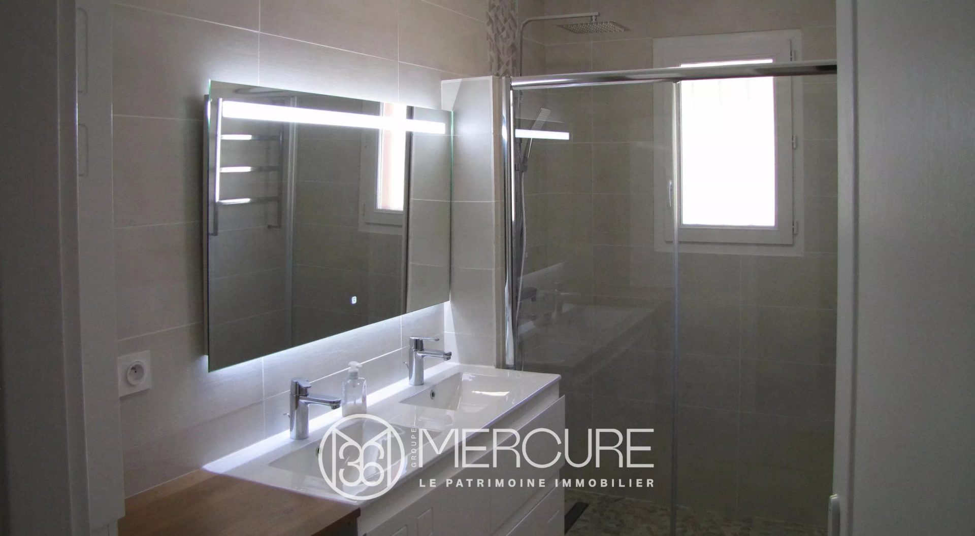 Double vitrage, radiateurs électriques, climatiseur, volets, jardin clos et arboré avec carport pour deux voitures, abri de jardin, cabanon en bois. Foncier de 1 100 €.
