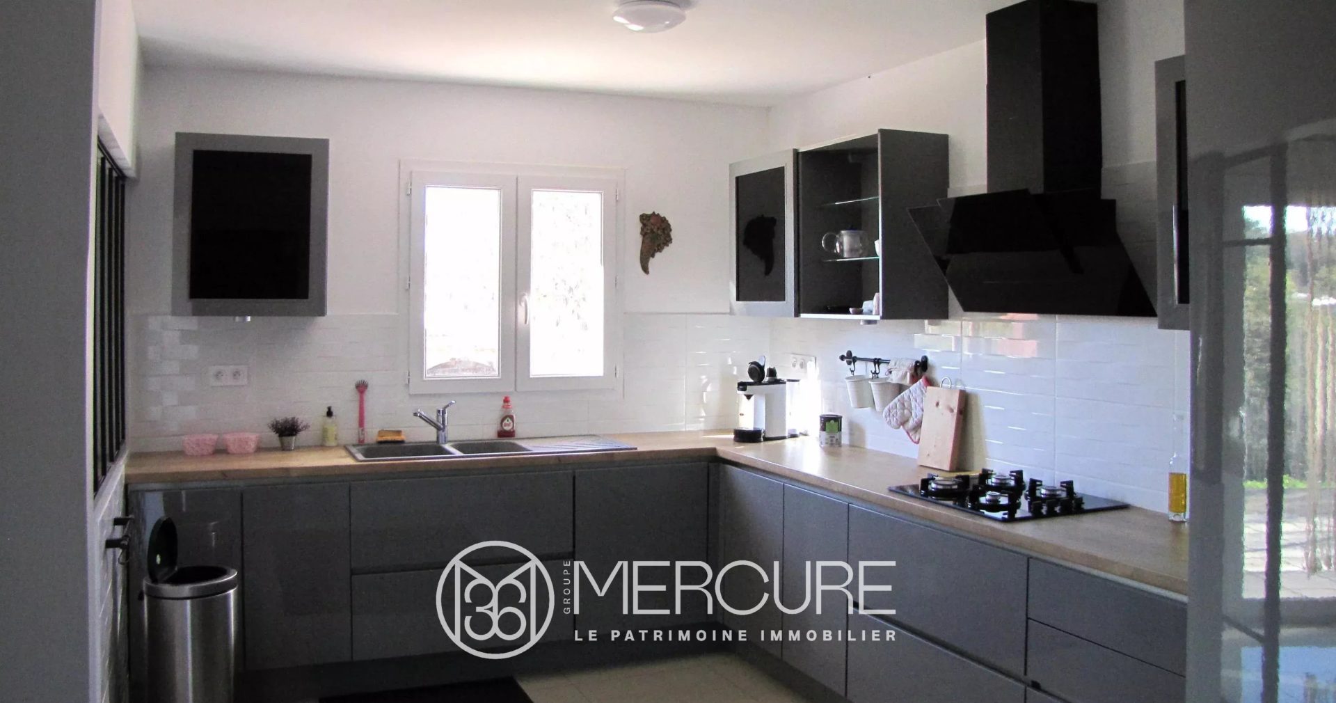 Le logis de plain-pied se compose d’une pièce à vivre lumineuse ouvrant sur le jardin via des portes-fenêtres à double vitrage, équipée d’un poêle à pellets et d’une climatisation réversible. La cuisine moderne a été aménagée avec soin présentant de nombreux rangements, un lave-vaisselle et un réfrigérateur intégrés, un four, un micro-ondes, une plaque chauffante et sa hotte. A la cuisine est adjoint un garage transformé en buanderie. Distribuées par un couloir, trois chambres avec placards intégrés et une salle d’eau comprenant une grande douche italienne, une double vasque et un toilette séparé.