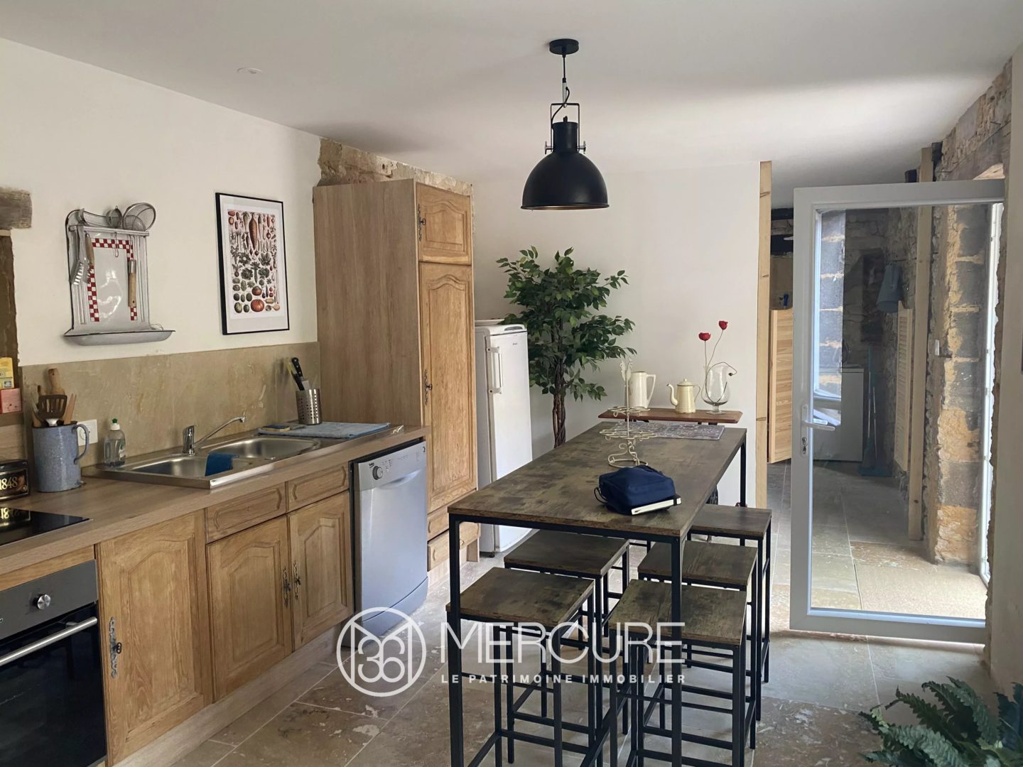 – Cuisine conviviale (17.5 m²), sol en travertin