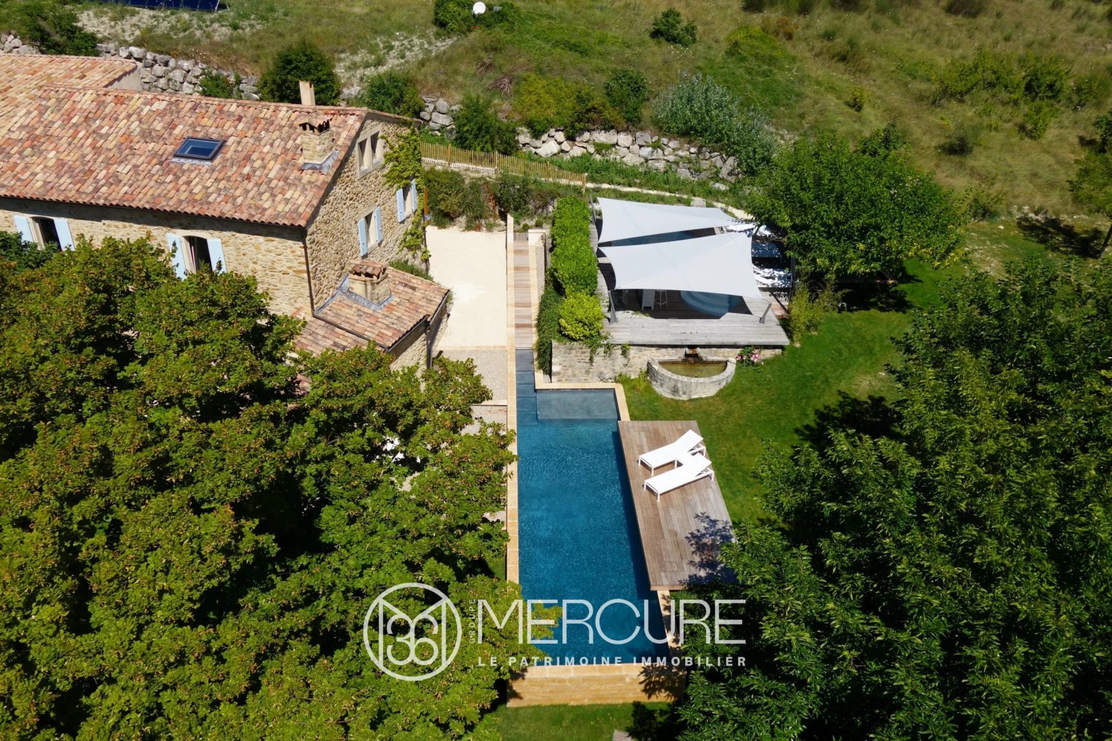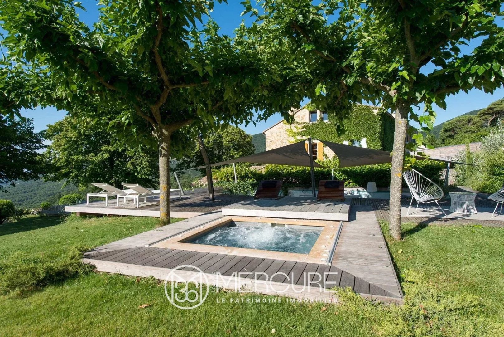 Piscine de 13,5 m x 3,5 m, autonettoyante et chauffée, jacuzzi extérieur, salons dété, terrasses côté vallée.