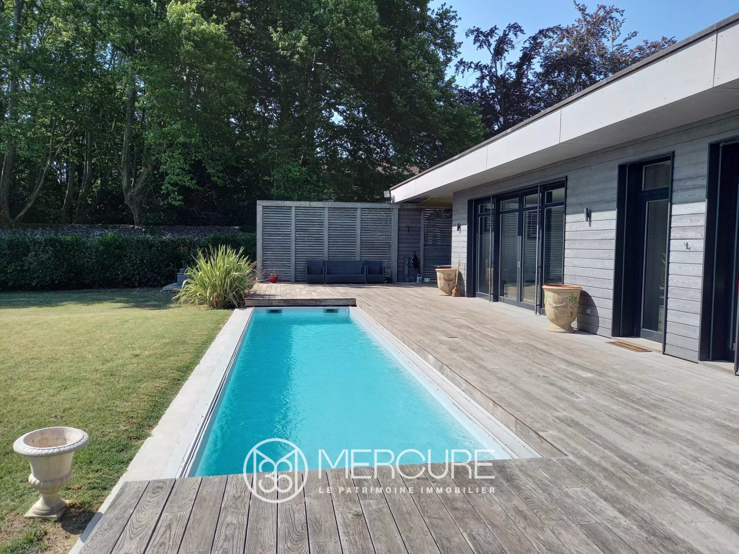Discrète, sublime, cette élégante villa d’architecte aux lignes épurées contemple le château de Grignan. A l’abri des regards, au calme, entourée d’un parc clos de 2500 m², cette villa écologique au design contemporain, développe ses 230 m² de plain-pied.