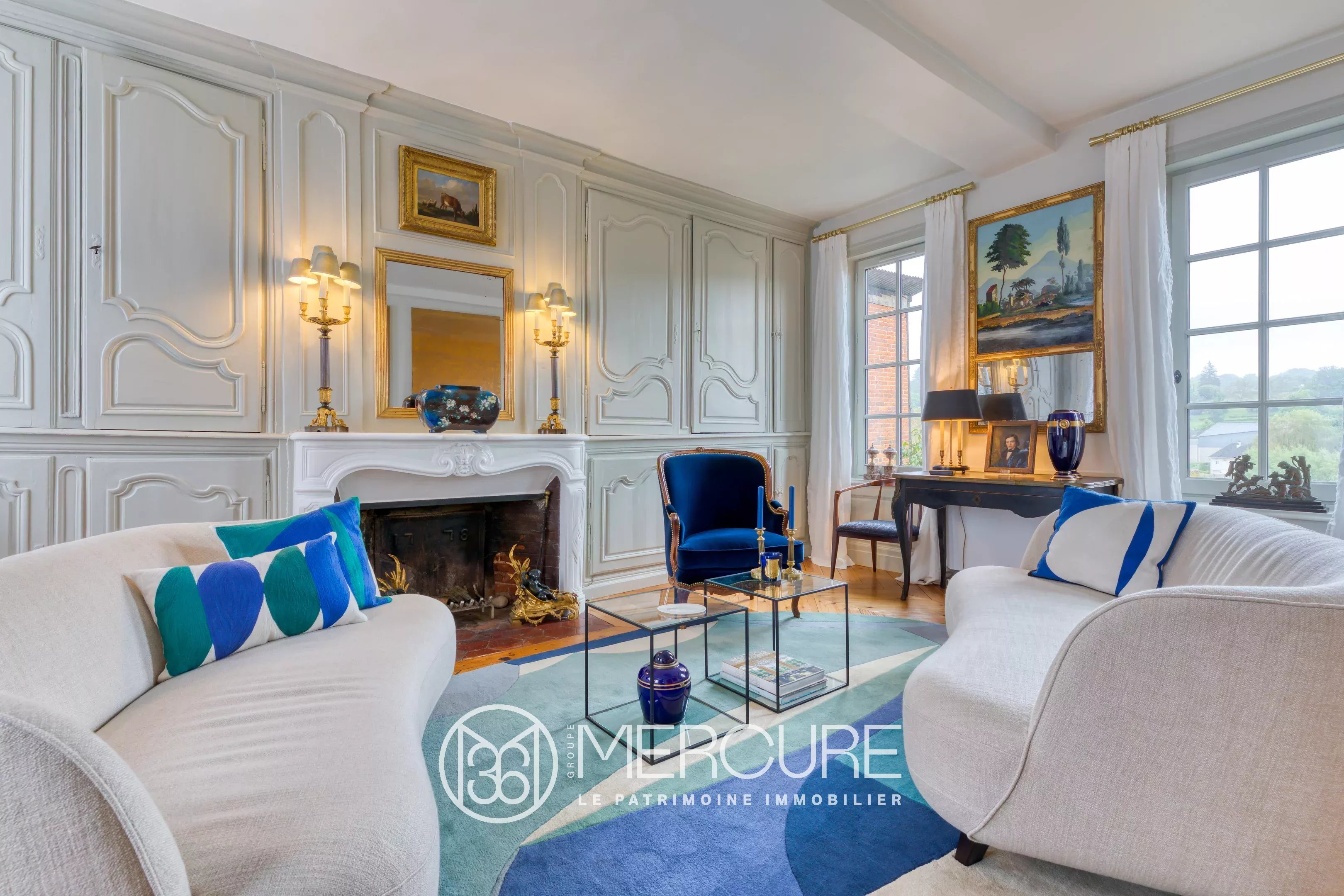 A l’étage, deux grandes chambres avec boiseries, une salle de douche et des toilettes séparées.