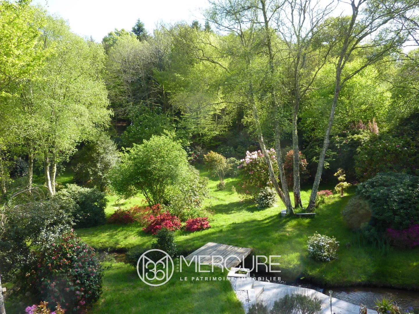 Bordée par un cours d’eau qui longe une grande terrasse en granit, la propriété compose un véritable tableau vivant où l’eau, la lumière et la végétation dialoguent en parfaite harmonie. À chaque saison, le jardin se métamorphose, offrant une atmosphère champêtre et apaisante.