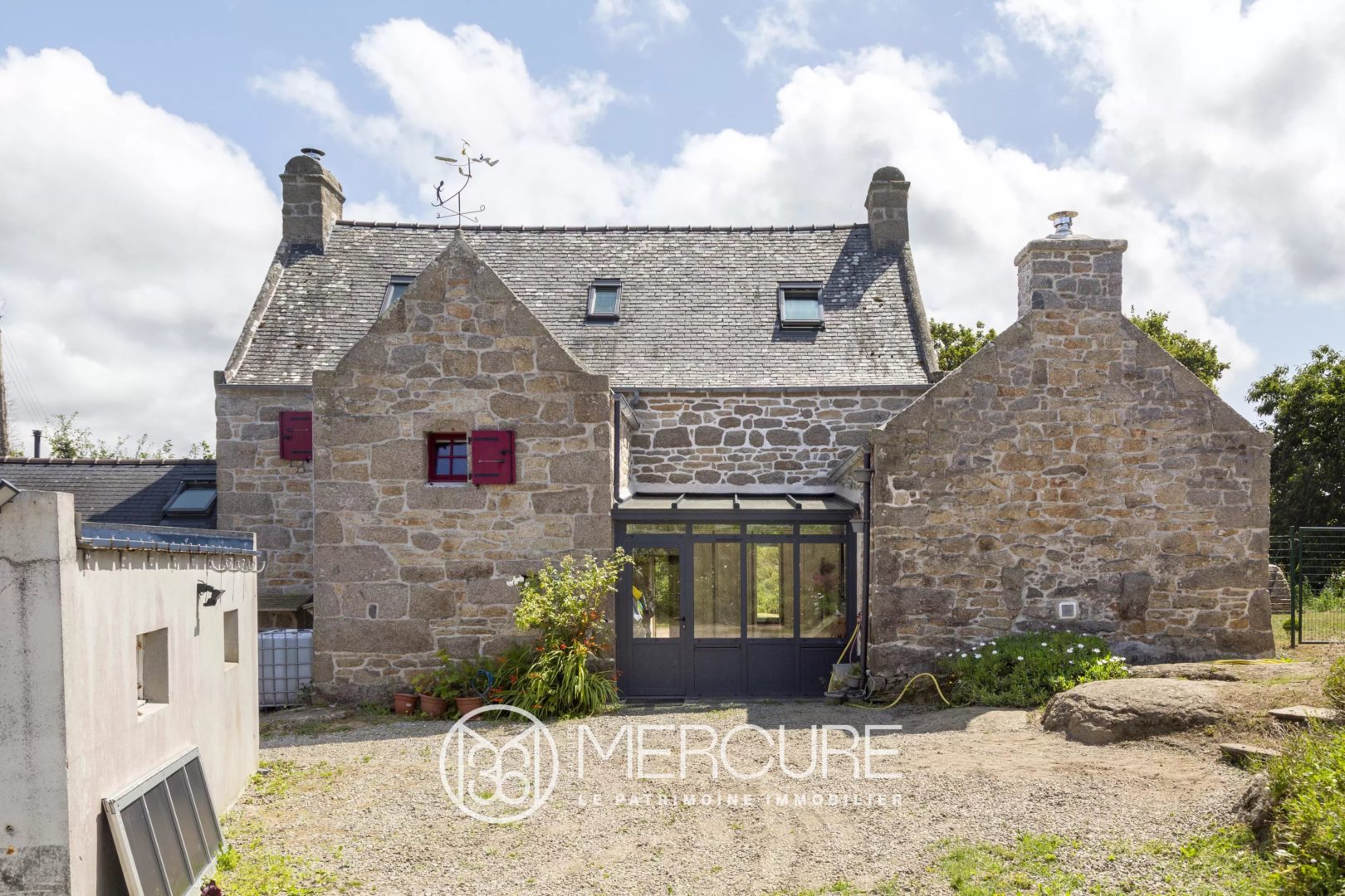 Edifiée de manière traditionnelle en granit sous couverture en ardoise de pays entre cour et jardin clos dans un bel environnement de maisons similaires, elle offre un cadre de vie paisible et de caractère.